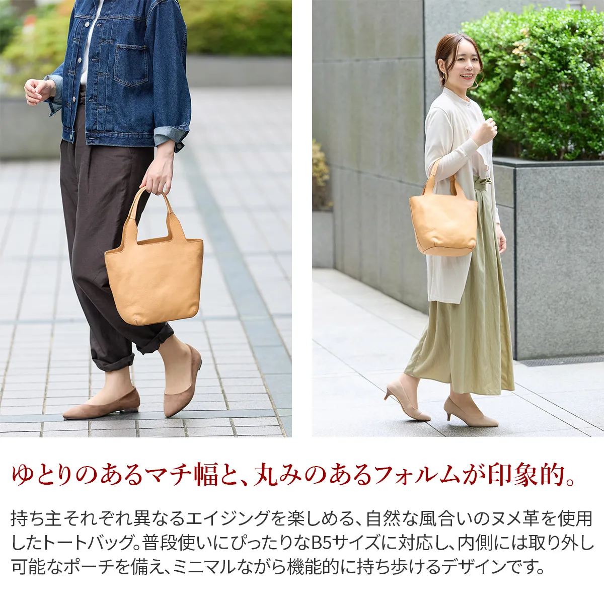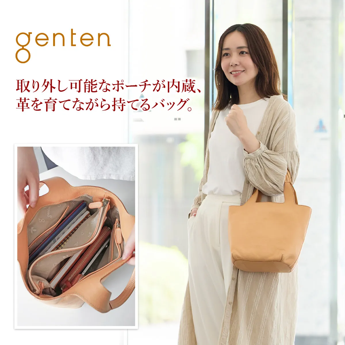 完全な無染色の白ヌメならではの、“綺麗な経年変化”を、存分にお楽しみいただけるシリーズ。 本革の証である、キズ、シミもそのまま活かし、あるがままの革の風合いを引き立たせるよう、ミニマムかつシンプルなフォルムとデザインにまとめました。 良質なイタリアトスカーナ産の革ならではの、奥深いエイジングを存分に楽しめるやさしいヌメ色でありながらも、急な雨や水濡れでも安心して使えるところもポイントです。 《素材の特性》 フィレンツェトスカーナのタンナーで鞣されたダブルショルダーを使用。 cuoioのヌメ革は、水が付いてもしばらくは染みこまないため焦らずに拭き取ることができます。 水染みが残りにくいため、白ヌメ革を普段使いに気兼ねなくいお楽しみいただけます。 キズやムラも含め、牛革本来の自然な風合いをそのまま取り込んでいます。使用頻度と日焼け等にあわせ、より本革ならではの深いエイジングの魅力を高めてくれます。 取り外し可能な天ファスナーポーチが内蔵。シーン別にサイズをお選びいただけます。 くせのないデザインでコーデ幅が広いところも魅力。