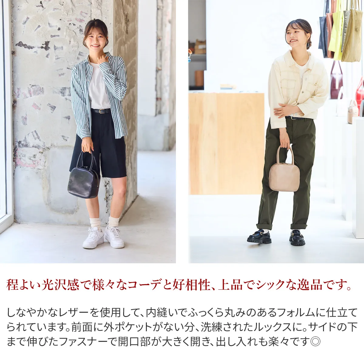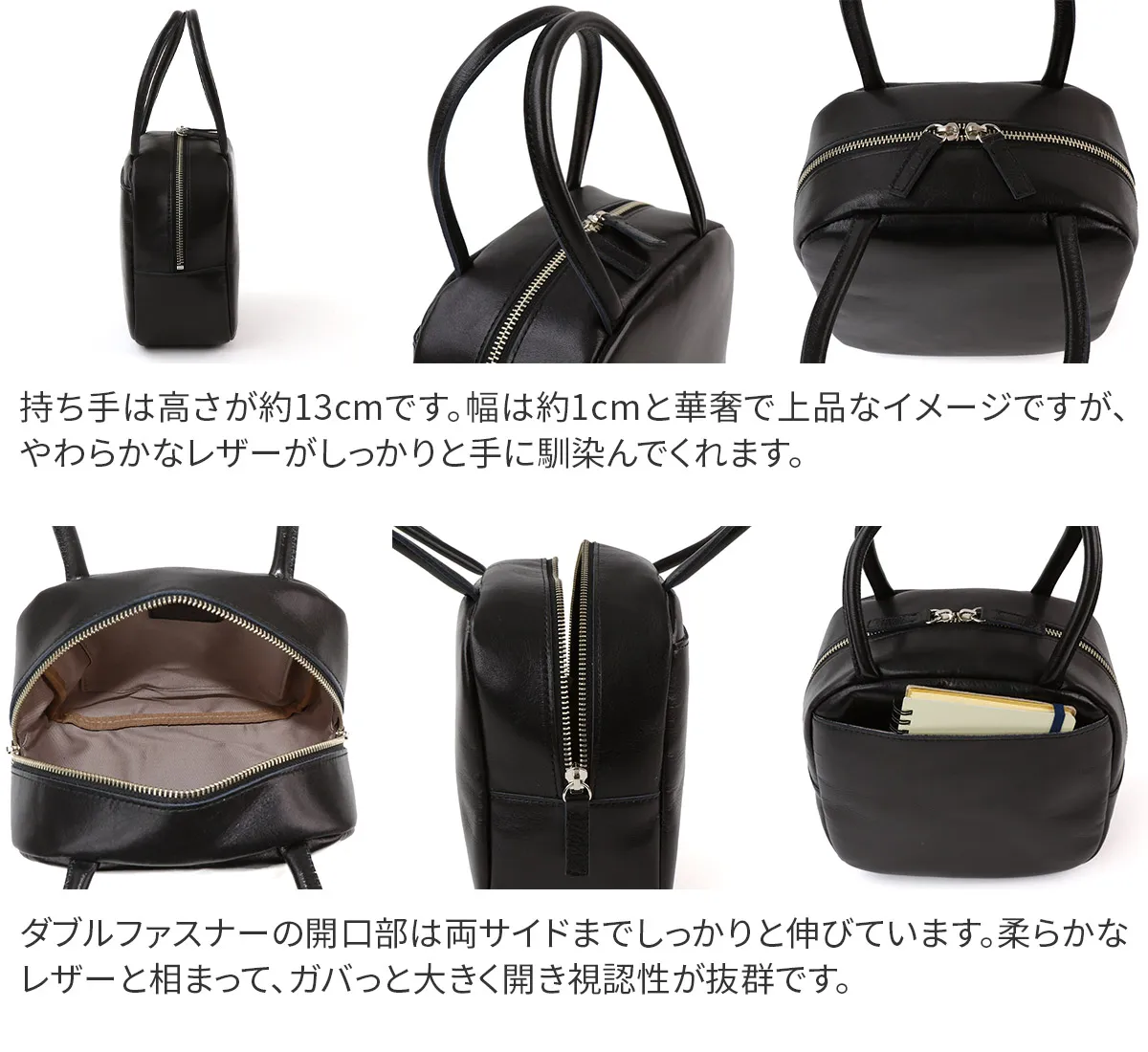 氷をイメージして作られた、コロコロと転がるようなデザインのICYシリーズ。 メイン開口部は、便利なダブルファスナー式でスムーズに開閉ができます。柔らかなレザーに、サイドまで施されたファスナーで開口部を大きく開くことができる視認性の良い仕様となっています。マチをたっぷりと施し、見た目以上の収納力◎上品でシックなデザインが魅力的です。