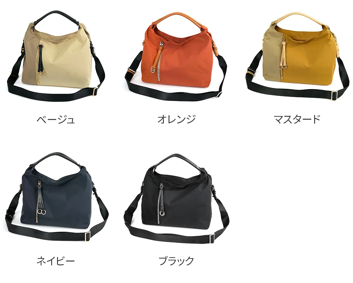 国産の撥水生地と優しいタッチ感の牛革を使用しています。 水や汚れを弾き、軽量でお手入れもかんたん。空模様を気にせず、抜群の使い勝手で毎日活躍してくれるバッグです。 《素材の特性》 天然皮革を使用しており、革そのものの風合いを生かすため、過度な色止め加工などは行っておりません。そのため、水に濡れたり、強い摩擦などにより、色落ちする恐れがございます。 通勤からプライベートにも使える2way仕様のバッグ。 柔らかい質感のふんわり軽いナイロン素材で、少しくらいの雨なら快適に使える耐久撥水仕様です。開口部は天ファスナーを採用し、大きく開き視認性に優れています。 ポケットを豊富に備えており、バッグの中で迷子になりがちな小物類もすっきりと収納できます。 ショルダーベルトは取り外し可能で、ハンドル持ちでも上品にお持ちいただけます。