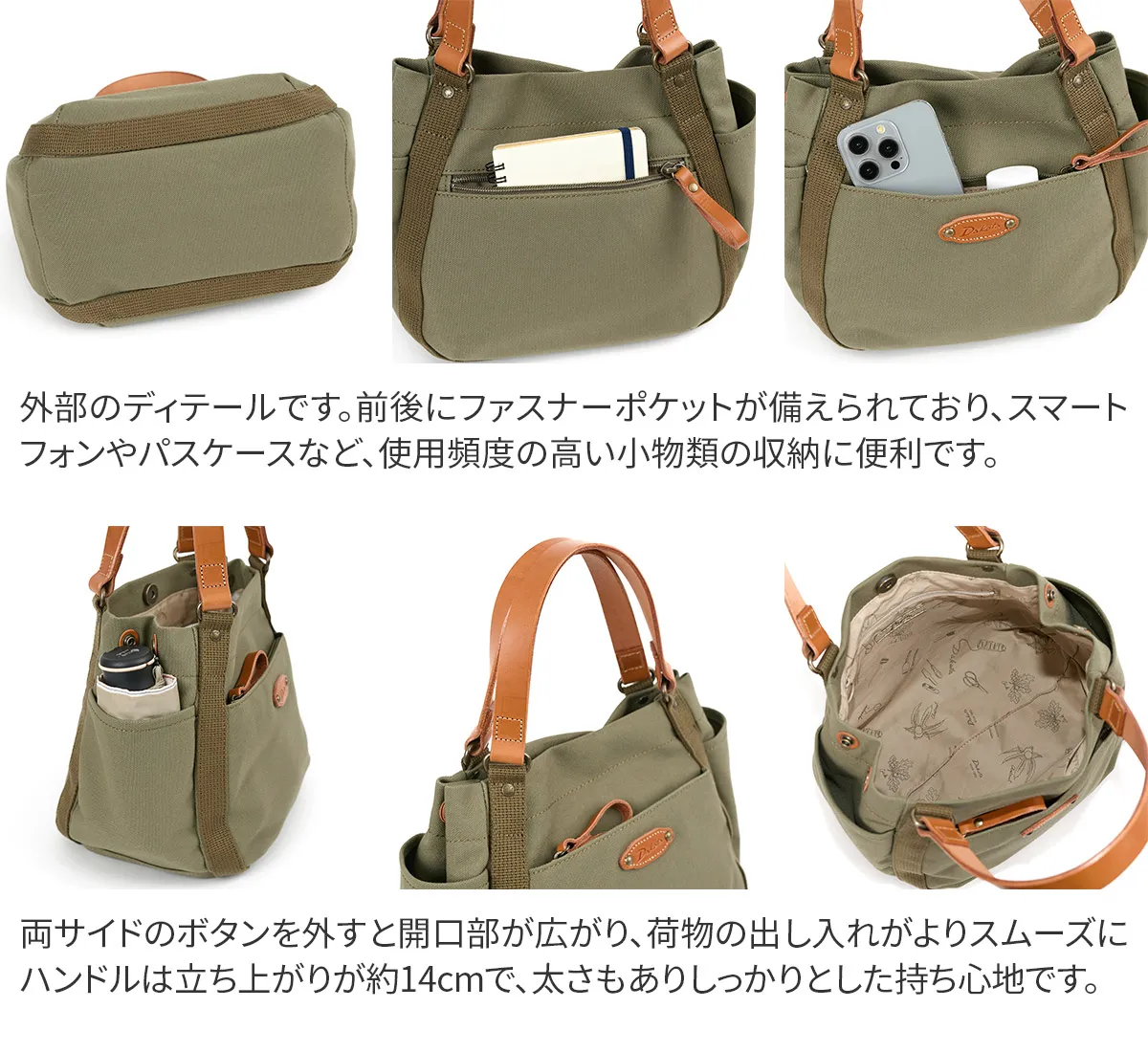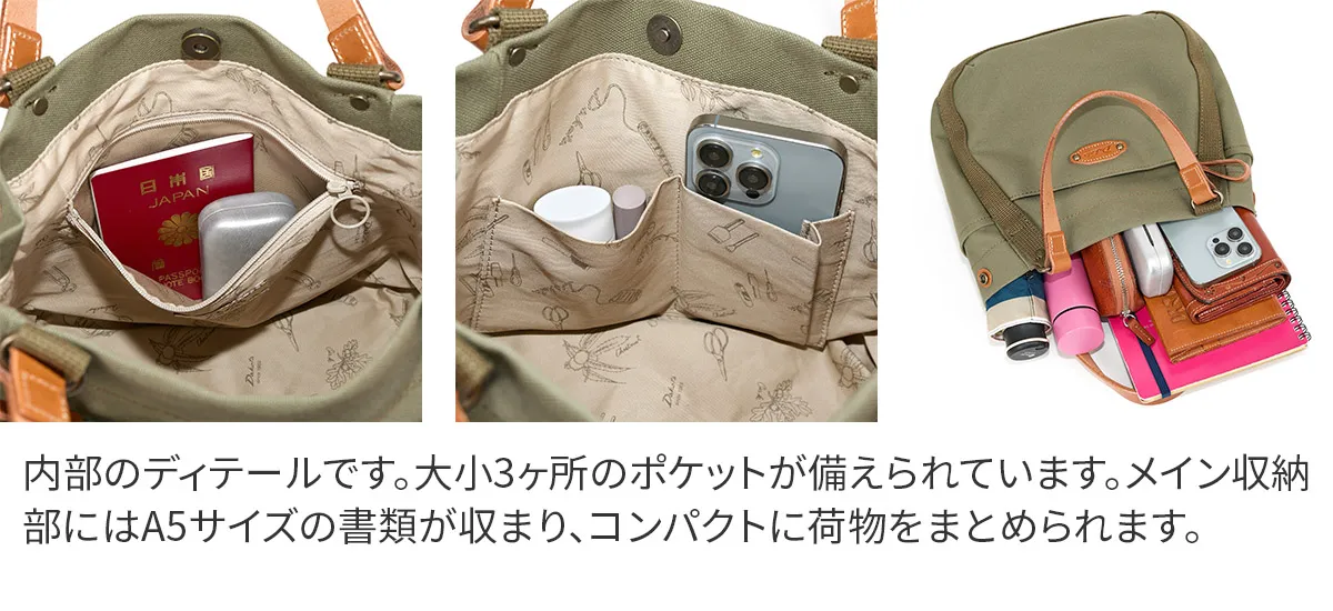 ハリ感のある素材を使用したシリーズ。デザインのワンポイントに厚ヌメを使用する事でカジュアル感を表現しました。 コットンと牛革のナチュラルな素材を組み合わせた、大人のカジュアルスタイルにぴったりのバッグです。使い勝手の良いポケットと、シーンに合わせて形が変わる柔軟なフォルム。毎日のスタイルに寄り添うバッグです。