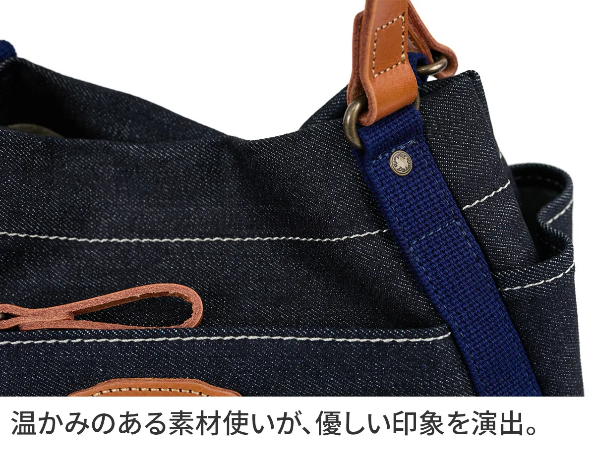ハリ感のある素材を使用したシリーズ。デザインのワンポイントに厚ヌメを使用する事でカジュアル感を表現しました。 コットン素材をメインに仕立てた、温もりのあるデザインが魅力の手さげバッグ。コンパクトながら、両サイドのスナップボタンにより容量に応じてフォルムを変えられる機能的な設計。外側・内側ともに豊富なポケットを備え、使い勝手も抜群です。汎用性が高く、気づけばいつも手に取ってしまうような、日常に寄り添うアイテムです。