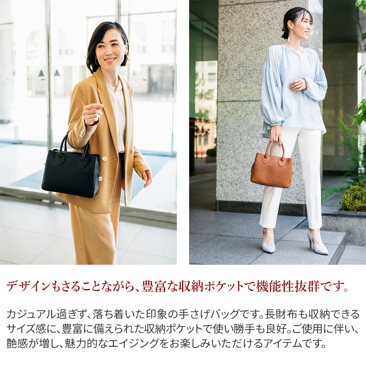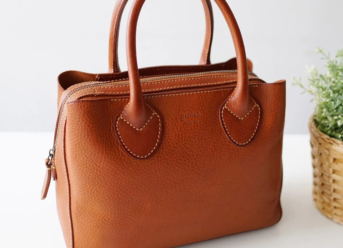 知恵や工芸などを司る、古代ローマの美神"ミネルヴァ MINERVA" ミニマムな中に漂う知的な佇まいと、数々の手仕事に裏打ちされた確かな品格。 その存在感に穏やかさと豊かさを際立たせてくれる、優良質なヴァケッタ革の魅力。 何かを足すのではなく、何も引くこともない、エターナルな思いを込めて造られたアイテムの数々は、 手に取るたびに至高の風格を垣間見せてくれます。 貴方の傍らで、ともに静かに響きあえる・・・そんな関係を築けるバッグです。 <素材の特性・メリット> gentenお馴染みのヴァケッタ革、ミネルバボックス(minerva box)をふんだんに使用しました。 バッグ本体やポケットの仕様部分に、革一枚仕立ての構造を多くあしらい、切り目や革裏を、職人が一枚一枚丁寧に腑糊で磨きをかけました。 時間をかけて鞣されたタンニン革だからこそ楽しめる一枚革の魅力とエイジングの極みを存分にお楽しみください。 カジュアル過ぎず、落ち着いた印象の手さげバッグです。長財布も収納できるサイズ感に、豊富に備えられた収納ポケットで使い勝手も良好。ご使用に伴い、艶感が増し、魅力的なエイジングをお楽しみいただけるアイテムです。