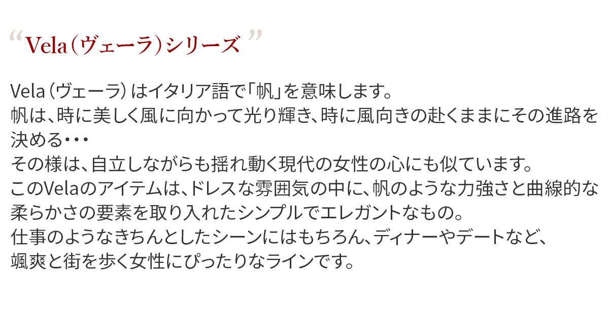 上品かつカジュアルな雰囲気のショルダーバッグです。レザーワッペンがデザインのアクセントになっています。程よいサイズ感で、ショッピングや旅行などのお出かけにぴったりです。取り外し可能なショルダーベルトが付属しているので、シーンに合わせて持ち方を変えることができます。 VELA(ヴェーラ)=イタリア語で「帆」を意味する、張り出しと膨らみのコントラストが美しいネオクラシックなデザインのライン。皮革生産地である姫路松原地区の牛革に、マットな質感をベースに、ほどよい光沢感を持たせ女性らしい色気を醸し出し、飽きのこない仕上がりに仕上げました。