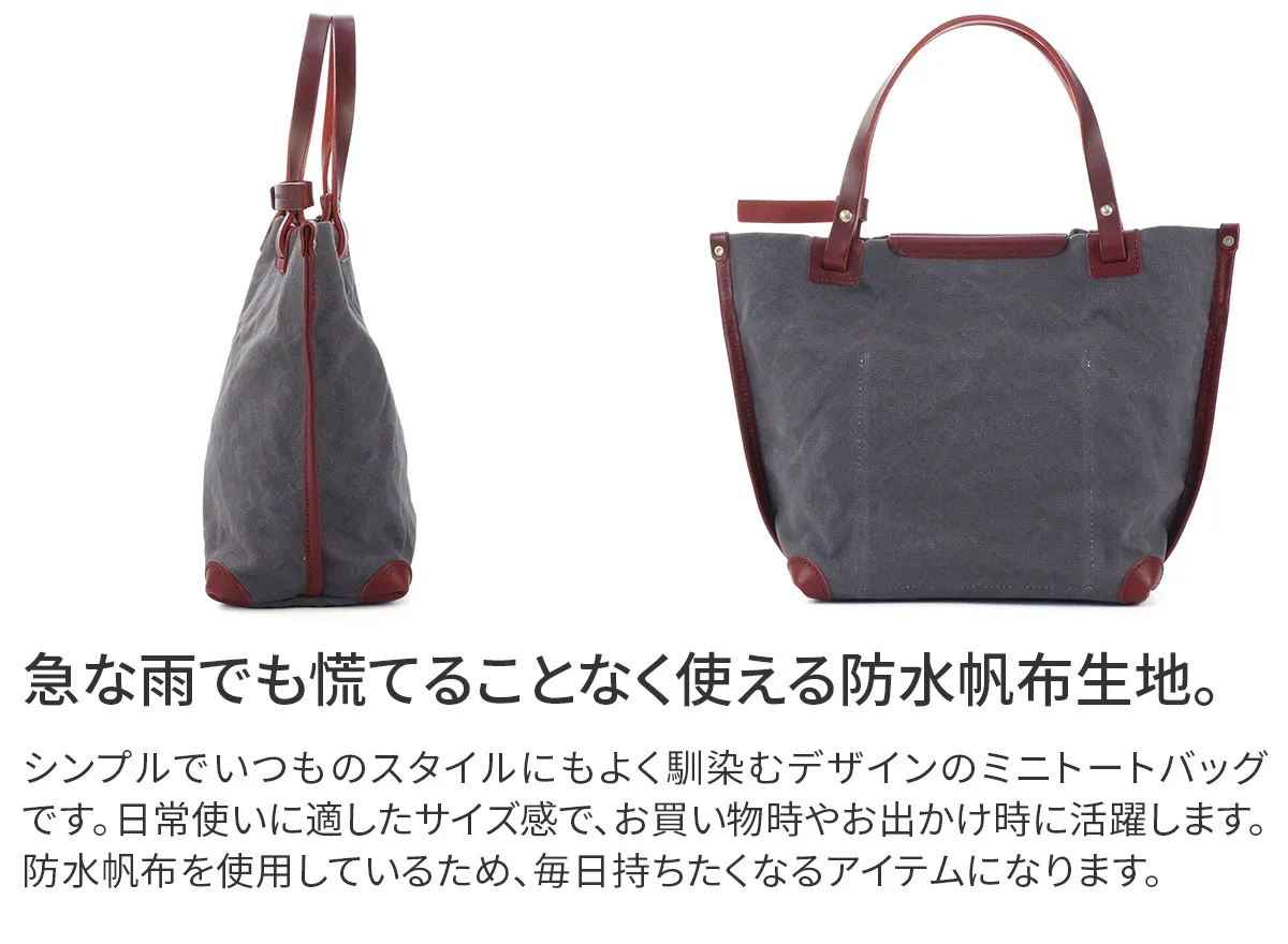 SEAGULL SHIP(シーガルシップ) 防水ドゥーマン 防水バイオクロス×栃木レザー パイピングトートバッグ(小) SMIC-036 シンプルで日常使いに寄り添う、 上品なミニサイズのトートバッグ。
