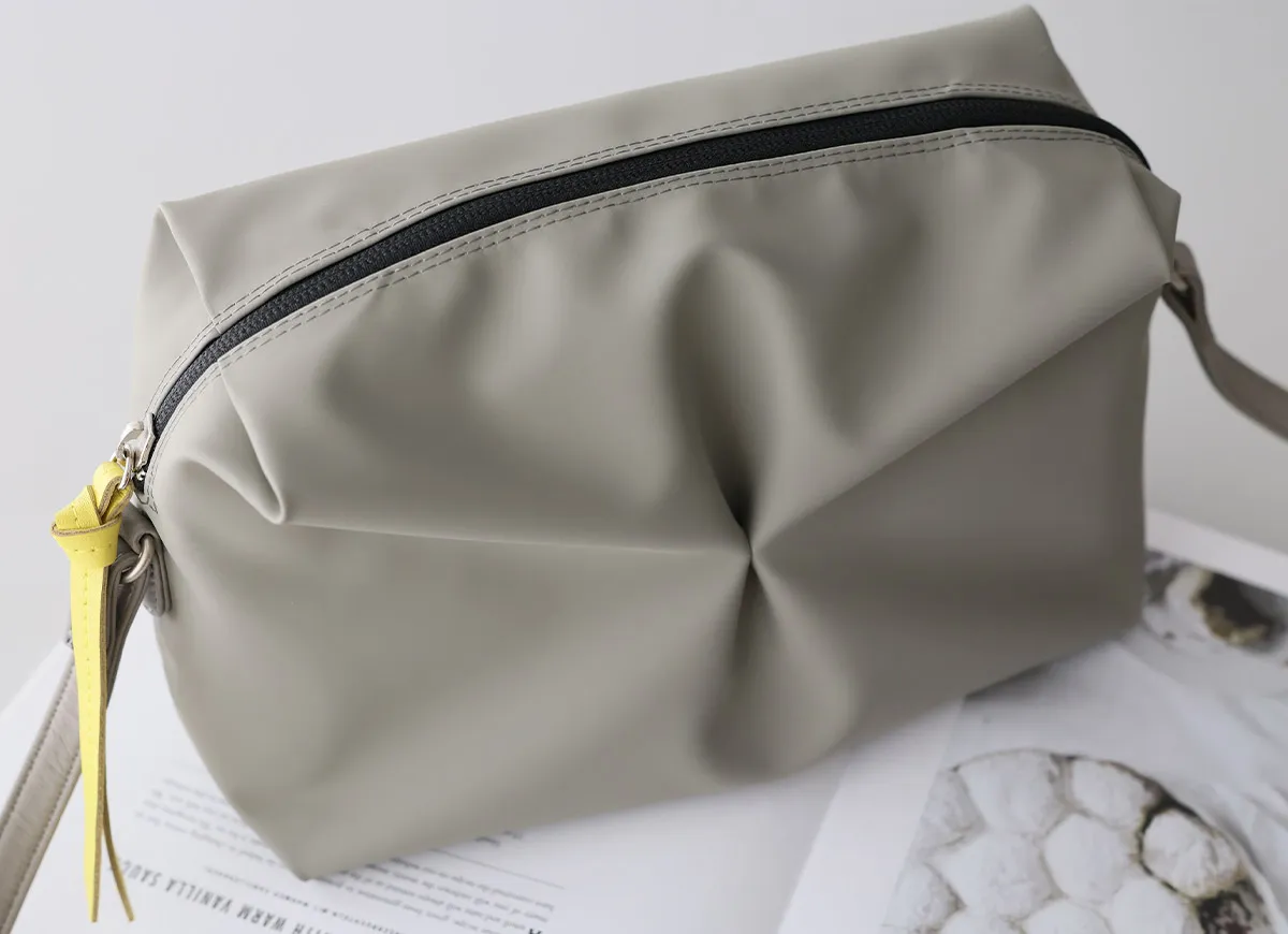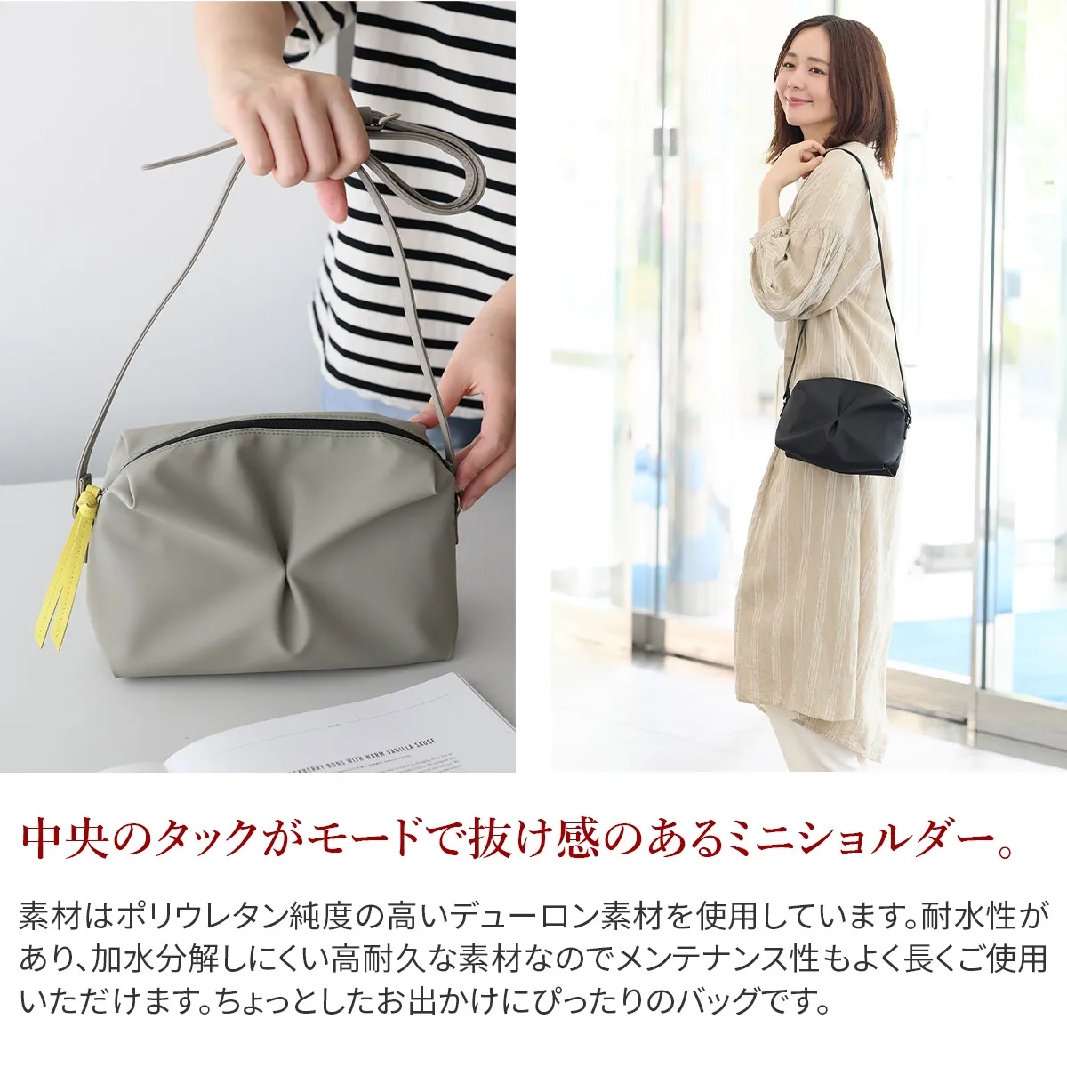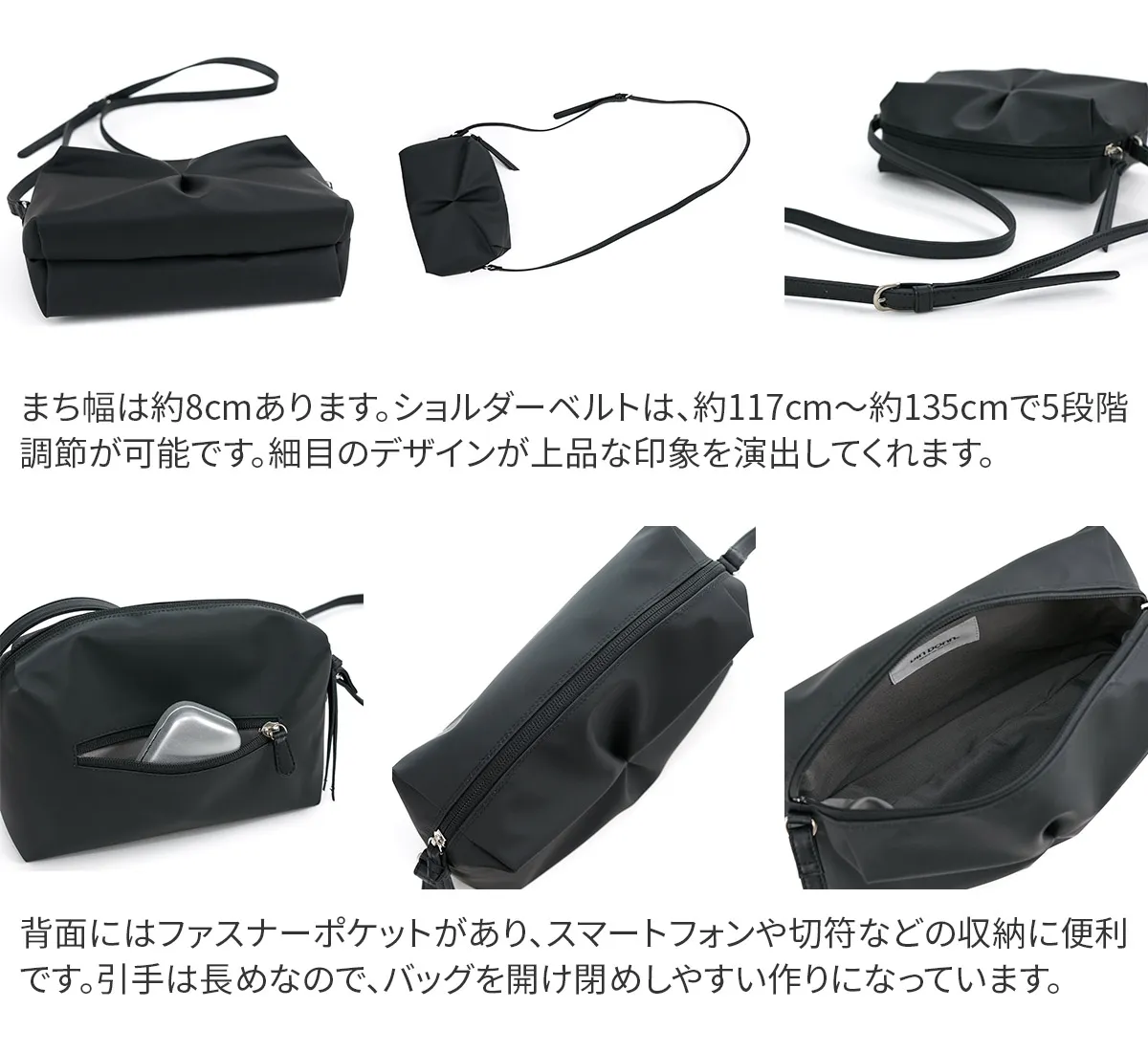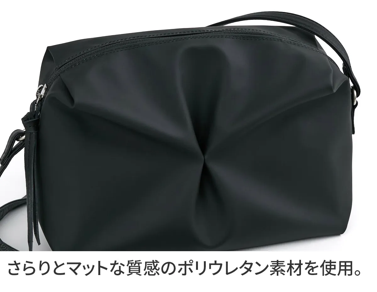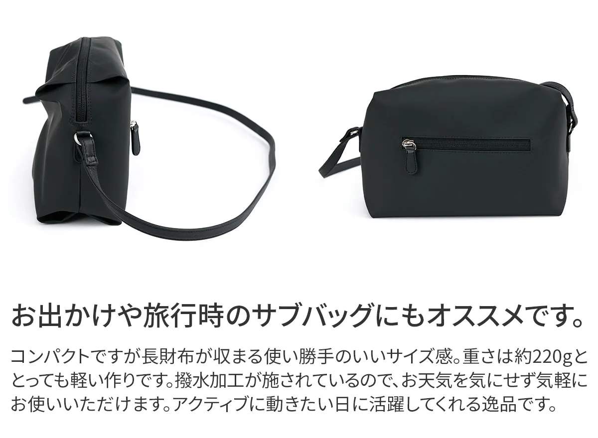 ポリウレタン素材のデューロンの軽くて丈夫な素材で 女性でも男性でもお使いいただける使いやすさを兼ね備えたシリーズです。 《素材の特性》 ・尖ったものなどでは傷はつきにくいですが、刃物などは切れるのでご注意ください。 ・素材は防水性能がございますが、縫製上、本体は完全防水仕様ではありません。 ・状態により、色や質感など写真と多少異なる場合がございます。 ・素材の質感などは指定できません。予めご了承ください。 ・革の特性上、細かいキズ・しわ・点などが見られる場合がございますが、不良品ではございません。 小ぶりながら存在感たっぷりモード感漂うデザインで、コーデのアクセントになるアイテムです。コンパクトながら、長財布が収まる使い勝手の良いサイズ感です。重さは約220gととっても軽く、アクティブに動きたい日にもオススメです。撥水加工が施されており、お天気を気にせず気軽にお使いいただけます。