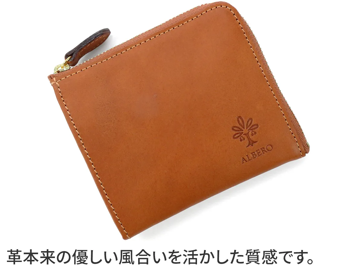 ALBERO(アルベロ) FLETTO(フレット) 小銭入れ付き財布(L字ファスナー式) 4827 ナチュラルな優しい風合いが映えるシンプルなデザイン 様々なシーンで活躍できるコンパクトサイズです