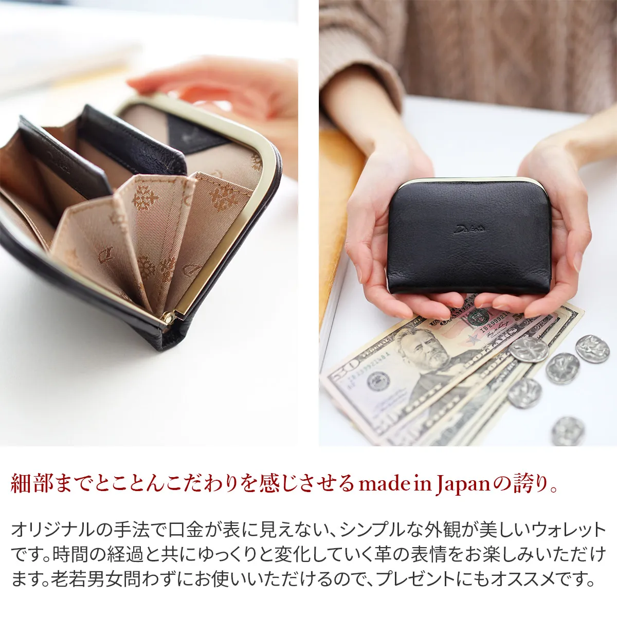 Dakota(ダコタ) グラツィア がま口財布 0036540 洗練されたシンプルな外観、 手元を品良く魅せるウォレット。