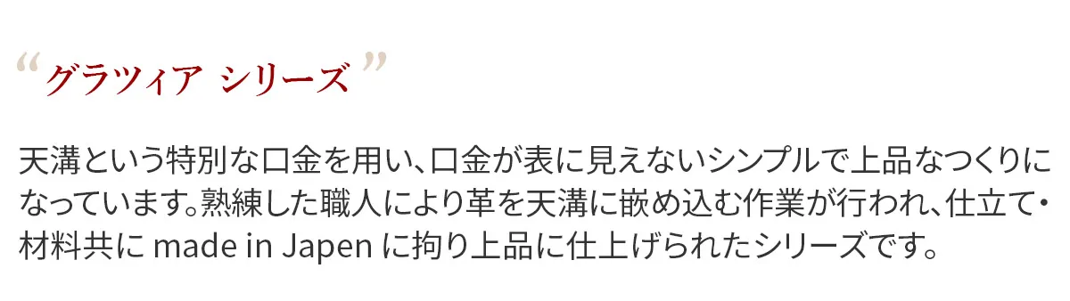 天溝という特別な口金を用い、口金が表に見えないシンプルで上品なつくりになっています。熟練した職人により革を天溝に嵌め込む作業が行われ、仕立て・材料共にmadeinJapenに拘り上品に仕上げられたシリーズです。 キャッシュレス化に対応したコンパクトなサイズのウォレットです。深みのあるカラーが美しく、手元を品よく魅せてくれます。男女兼用でお使いいただけます。