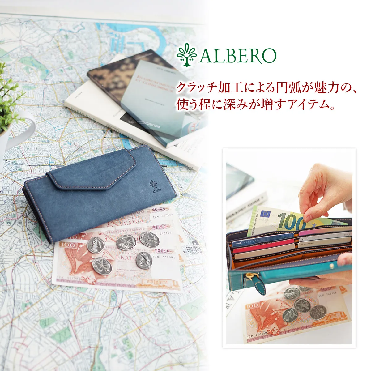 ALBERO(アルベロ) Schiuma(スキューマ) 小銭入れ付き長財布 6057