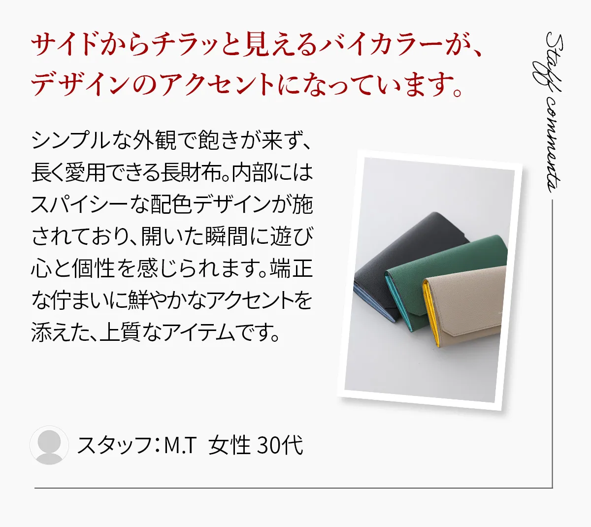 ※商品の色、素材感は実際のものに近づけるように努めておりますが、撮影状況、ディスプレイの状況等から、若干の誤差が生じる場合がございます。→詳しくはこちら。 特に、屋外での撮影画像は、光の当たり具合で色味が違って見える場合があります。商品の色味につきましては、商品のディテール画像をご参照ください。