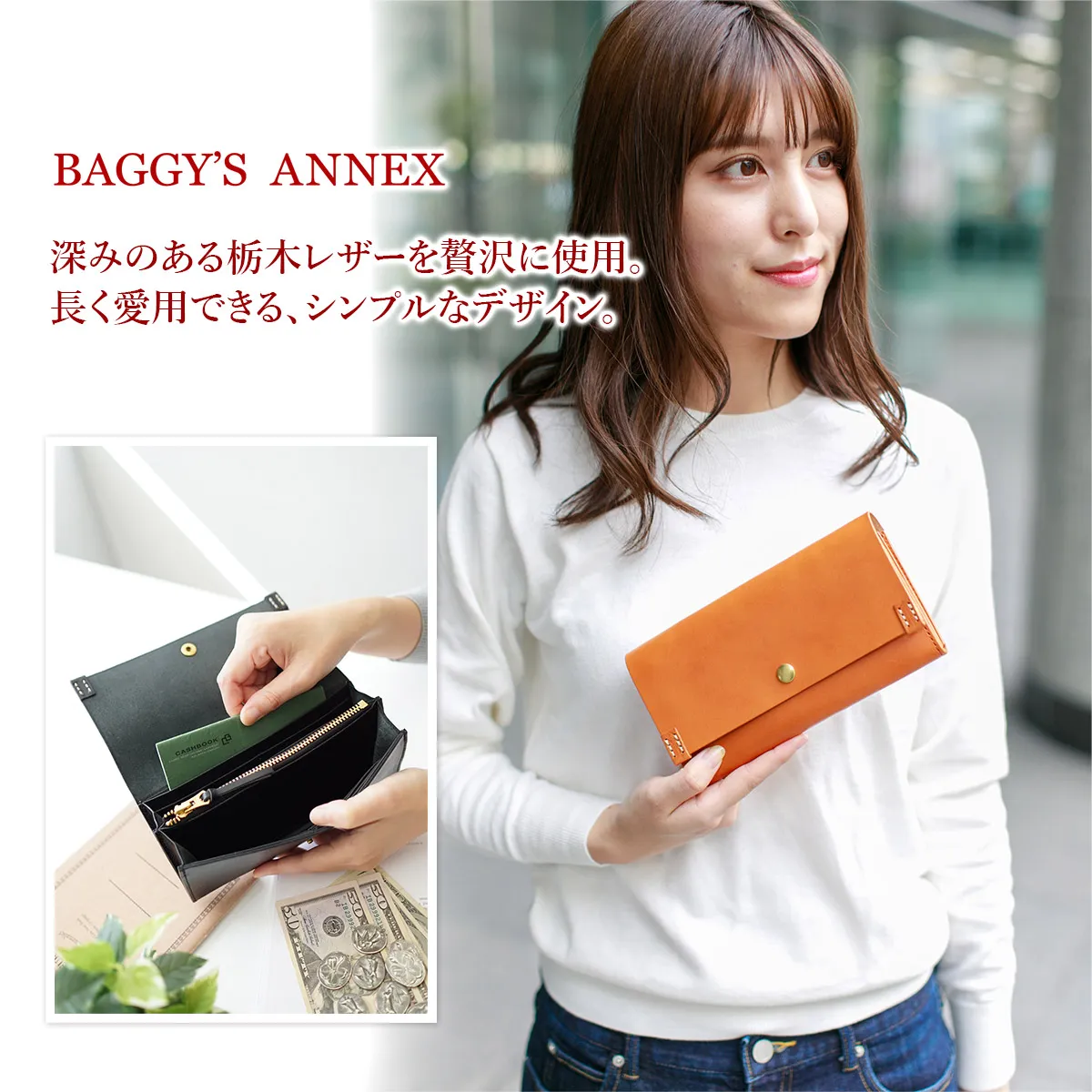 BAGGY'S ANNEX(バギーズアネックス) 栃木レザー 小銭入れ付き長財布 LKAZ-280