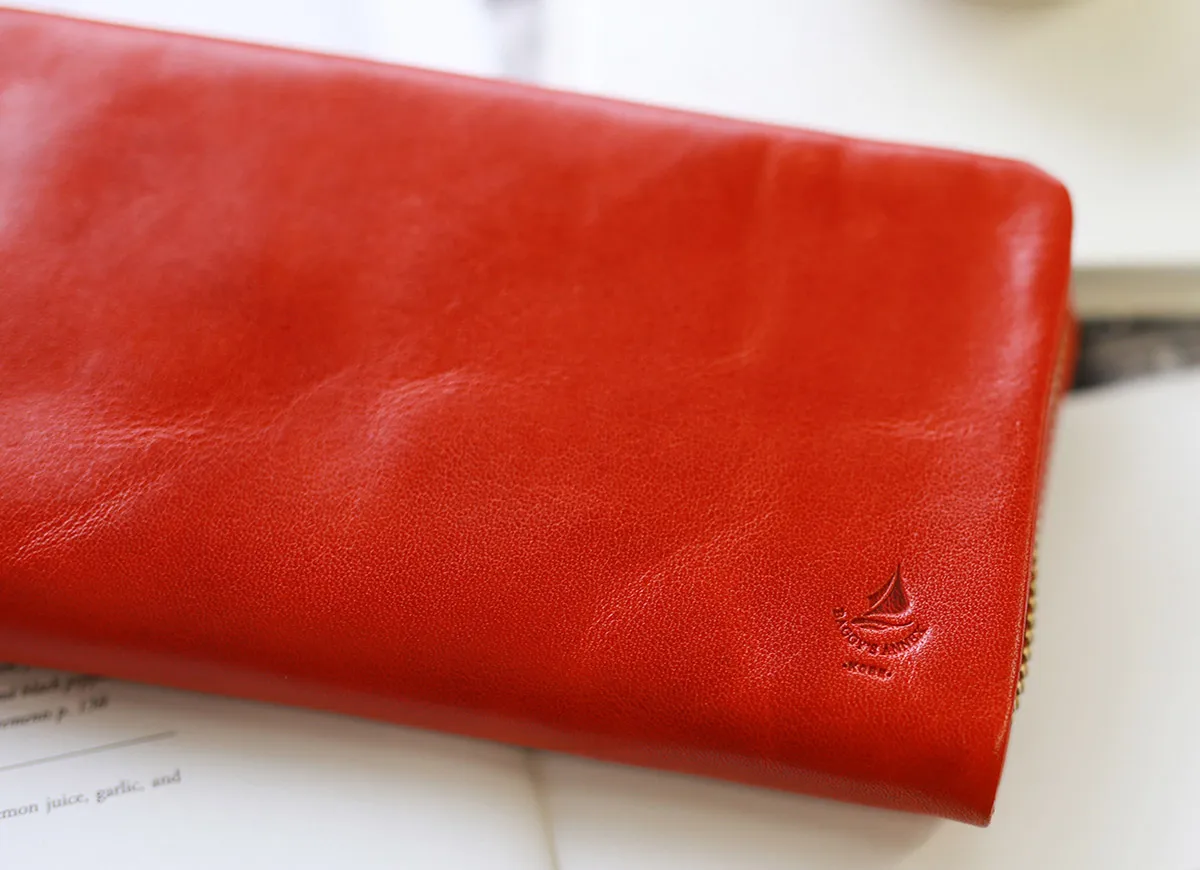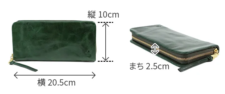 タンポナート技法によって完成されたレザーを使用しています。タンポナート技法とは、手で叩くように色合いを見極めながら色を塗り重ねる製法です。単色でもグラデーション掛かった美しいレザーに仕上げられています。 袋縫いにすることで、しなやかなレザーの手触りになっています。 ラウンドファスナー式の長財布なので、すっきりとしたフォルムを保ってお持ちいただけます。カード入れは21ヶ所に備え付けられており、通帳も収納していただける大容量タイプです。 明るめの色から落ち着いた色まで揃っているので、お好みをカラーをお選びいただけます。