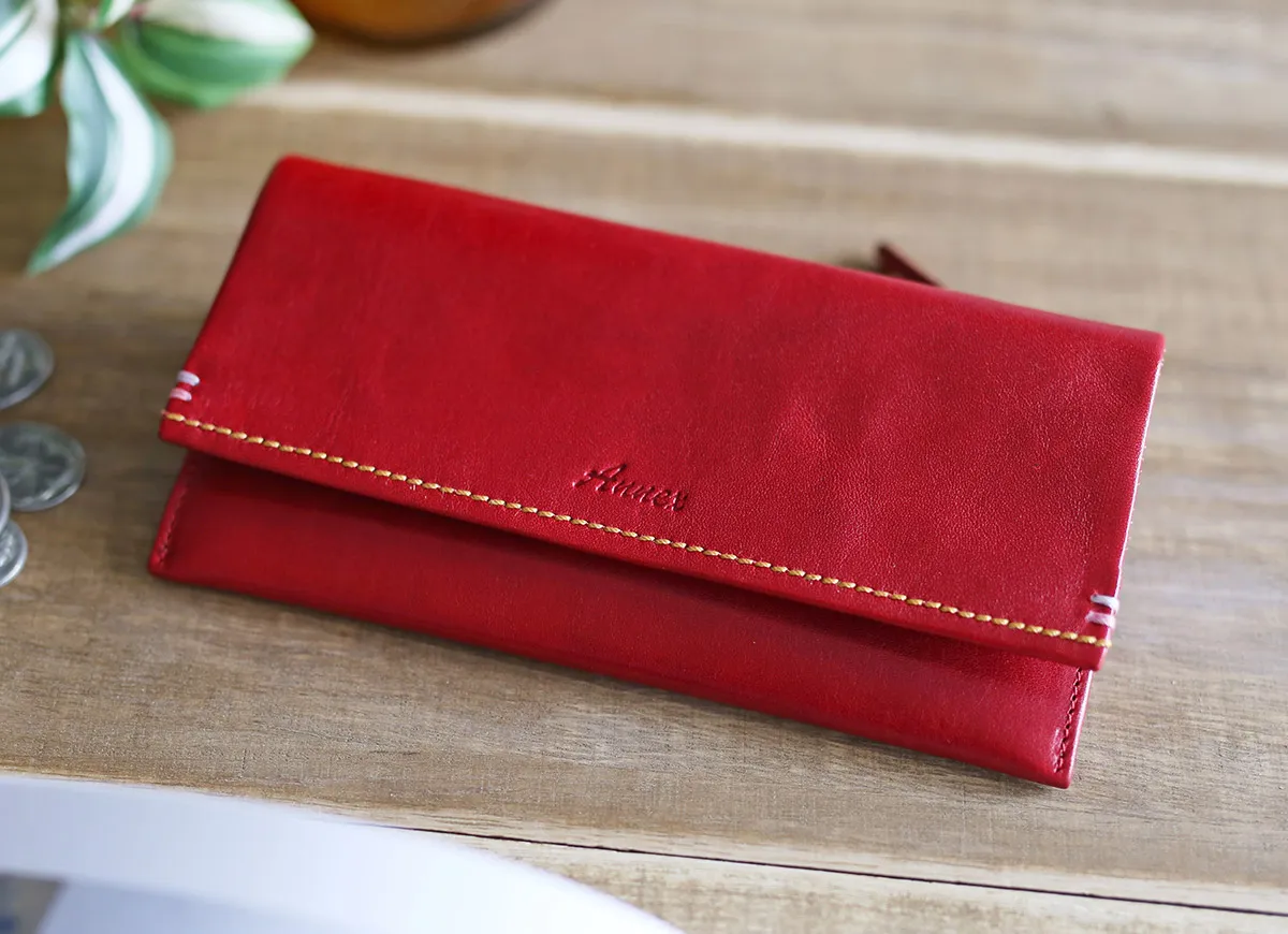 すっきりとしたフォルムでスマートにお持ちいただけるロングウォレットです。イタリアンレザーを贅沢に使用し、カジュアルながら上品な印象に仕上がっています。年齢問わずに幅広くお持ちいただけるシンプルなデザインで、ギフトにもお勧めです。 植物タンニンなめしで作られた、革の風合いをありのままに活かして作られたレザーを使用しています。本革のナチュラルな風合いは、上質感漂う佇まいです。両サイドのステッチをアクセントにしたデザインで、滑らかな手触りが特徴になっています。