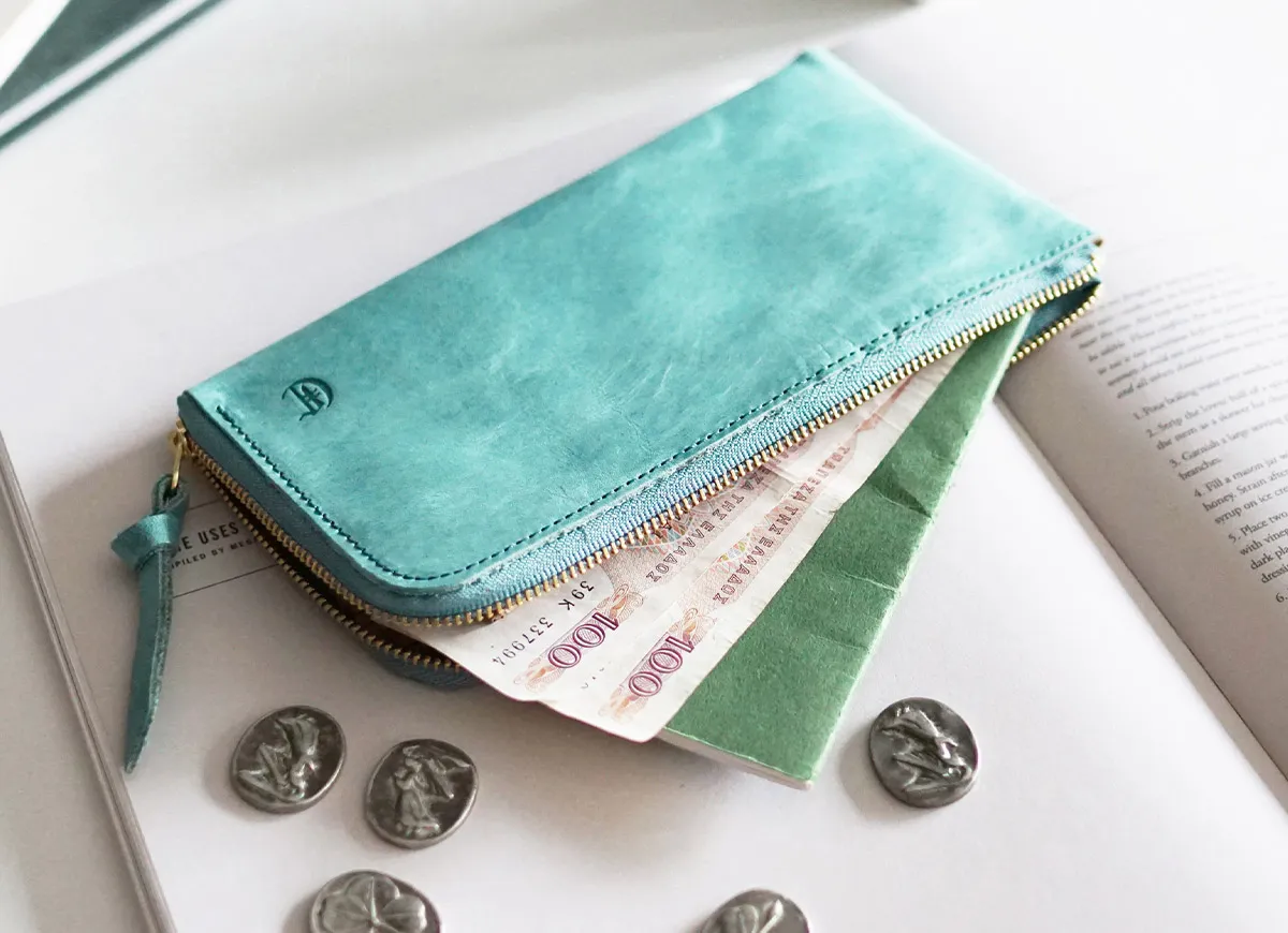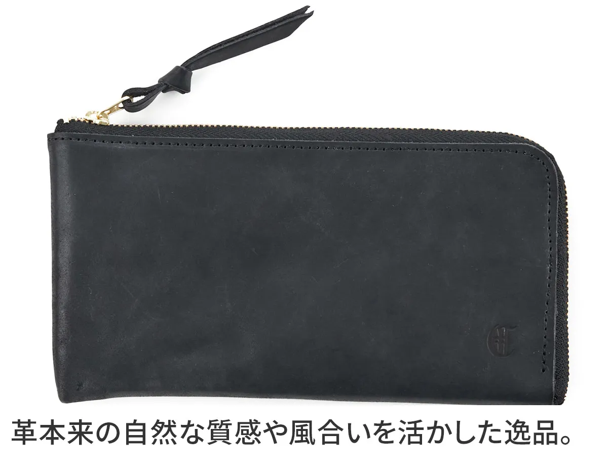 天然皮革特有の表情の個性を楽しめるロングウォレットです。シンプルな外観に、ブランドロゴの型押しと引手の結び目がアクセントになっています。L字ファスナーを開けるとカードや貨幣にすぐにアクセスができる、嬉しい仕様。裏地は軽量でしなやかなベージュカラーのコットンで、ナチュラルな印象です。