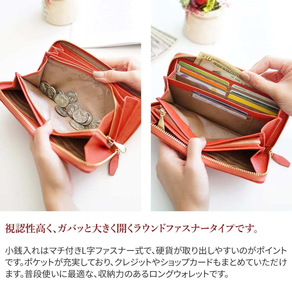 植物タンニン鞣しのイタリアンレザーにパールブローチをあしらっています。ナチュラルな革の雰囲気に一粒のパールが良く映え、素朴さと清潔感を感じさせます。エイジングの増すレザーにクラフト調のブローチが相まって、使う程にアンティークの様な趣を感じさせます。 キズやシワ、シボ、トラなど革の自然な風合いを活かしたカジュアルな素材に、パールブローチが品良く煌めき、手元に華やぎをもたらします。 シンプルですがクラシカルで、女性らしい印象を演出します。背面にオープンポケットが備わっており、レシートをサッと収納したり、カード入れが備わっているので、 良く出し入れするカードを収納するのに便利です。普段使いにぴったりで、カードや現金をたくさん持ち歩く方におすすめの長財布です。
