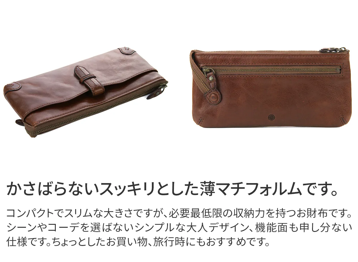 イタリアンレザーを使用したベーシックなカジュアルラインの商品です。デイリーにもお使い頂ける様に、シンプルにデザインしました。 シンプルな中にも素朴な雰囲気の漂うロングウォレット。イタリアの伝統的な技法で染色加工処理した皮革を使用しているので、革の持つ自然な風合いと感触をお楽しみいただけます。甘さを抑えたデザインで、男性の方にもおすすめです。