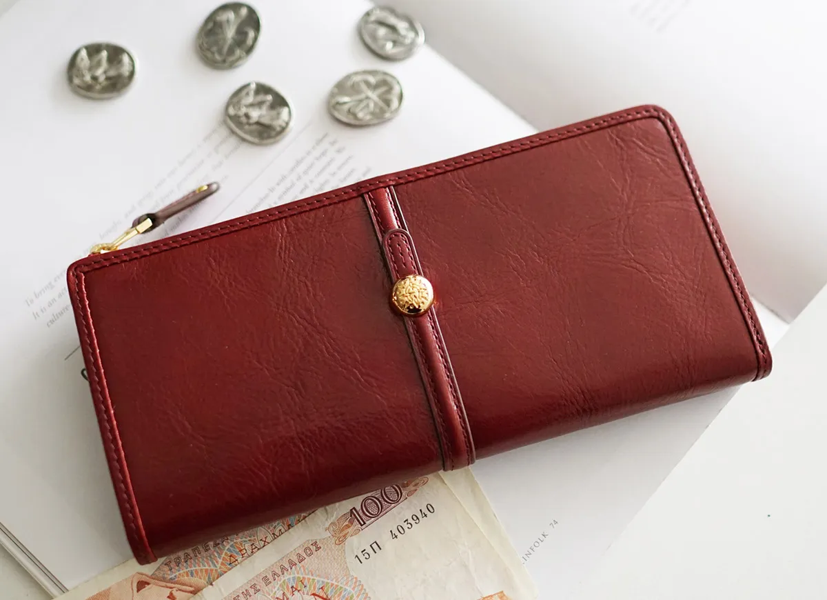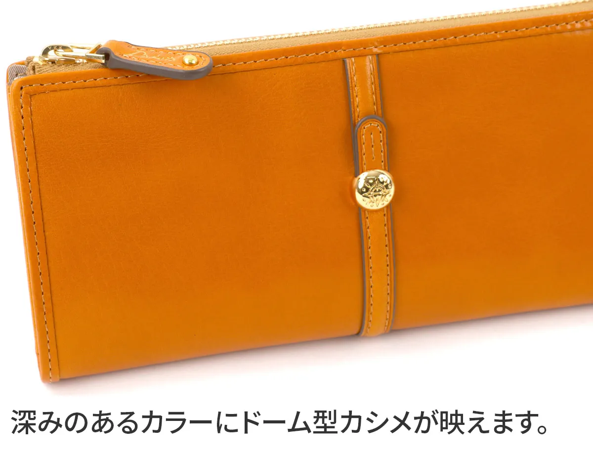 ベーシックなベルトデザインに丸いカシメがアクセントになったシリーズ。ころんとしたドーム型のカシメはイタリアにある大聖堂の丸天井”クーポラ”をイメージしています。クラシックな上品さと現代っぽいムードが組み合わさったタイムレスな魅力を放ちます。 L字ファスナーを開けると左右に7カ所のカード入れと、フリーポケットを備えた中身の把握がしやすい構造となっています。お札やカードの定位置を決めることで、自然と整理整頓できる使い心地の良いアイテムです。