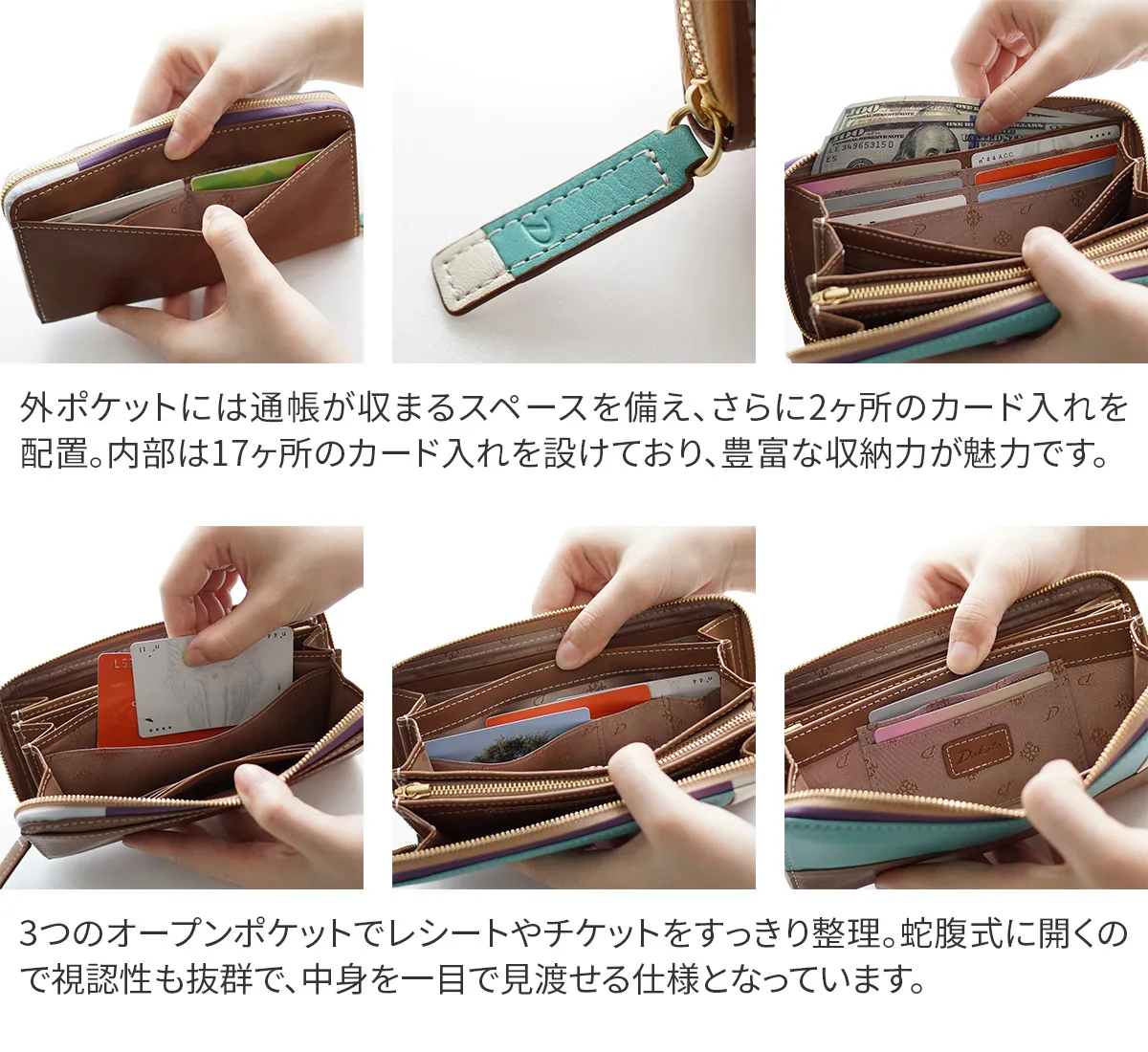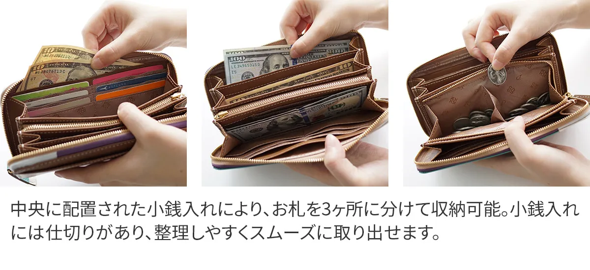 「色遊び」がテーマのブロッコシリーズのLimited Edition。雪で薄化粧した森林や、冬の夜明けに自然がつくりだす幻想的な情景を連想させる心ときめくカラーリングをお楽しみ下さい。 蛇腹式に大きく開き、高い収納力が魅力の長財布。引き手やファスナーテープなど細部までこだわったデザインも魅力的です。使うほどに風合いが増し、長く愛用できる逸品となっています。