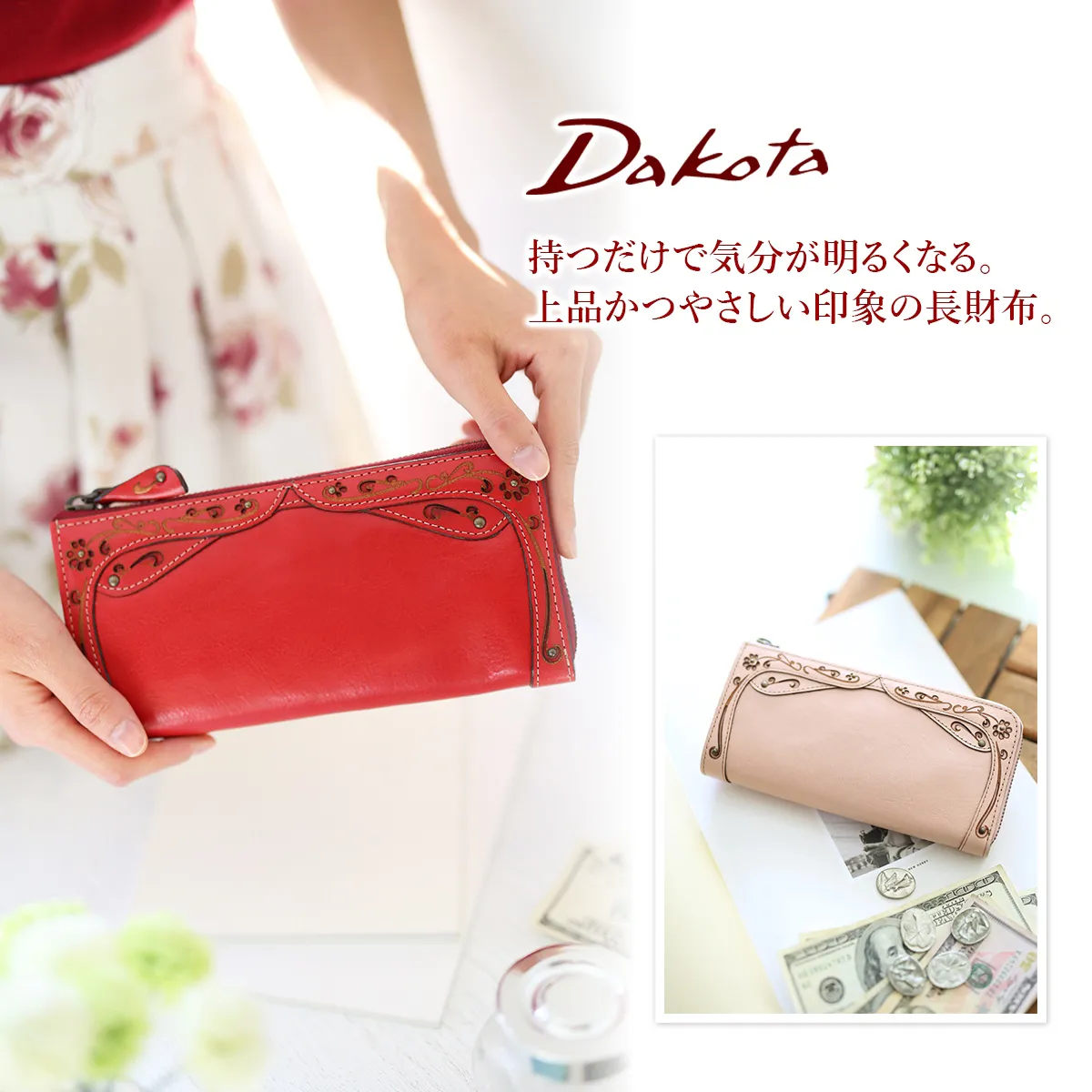Dakota(ダコタ) デイジー 小銭入れ付き長財布(L字ファスナー式) 0035224 0034224 通帳も収納できるポケット付き♪ お花モチーフが可愛いロングウォレット!