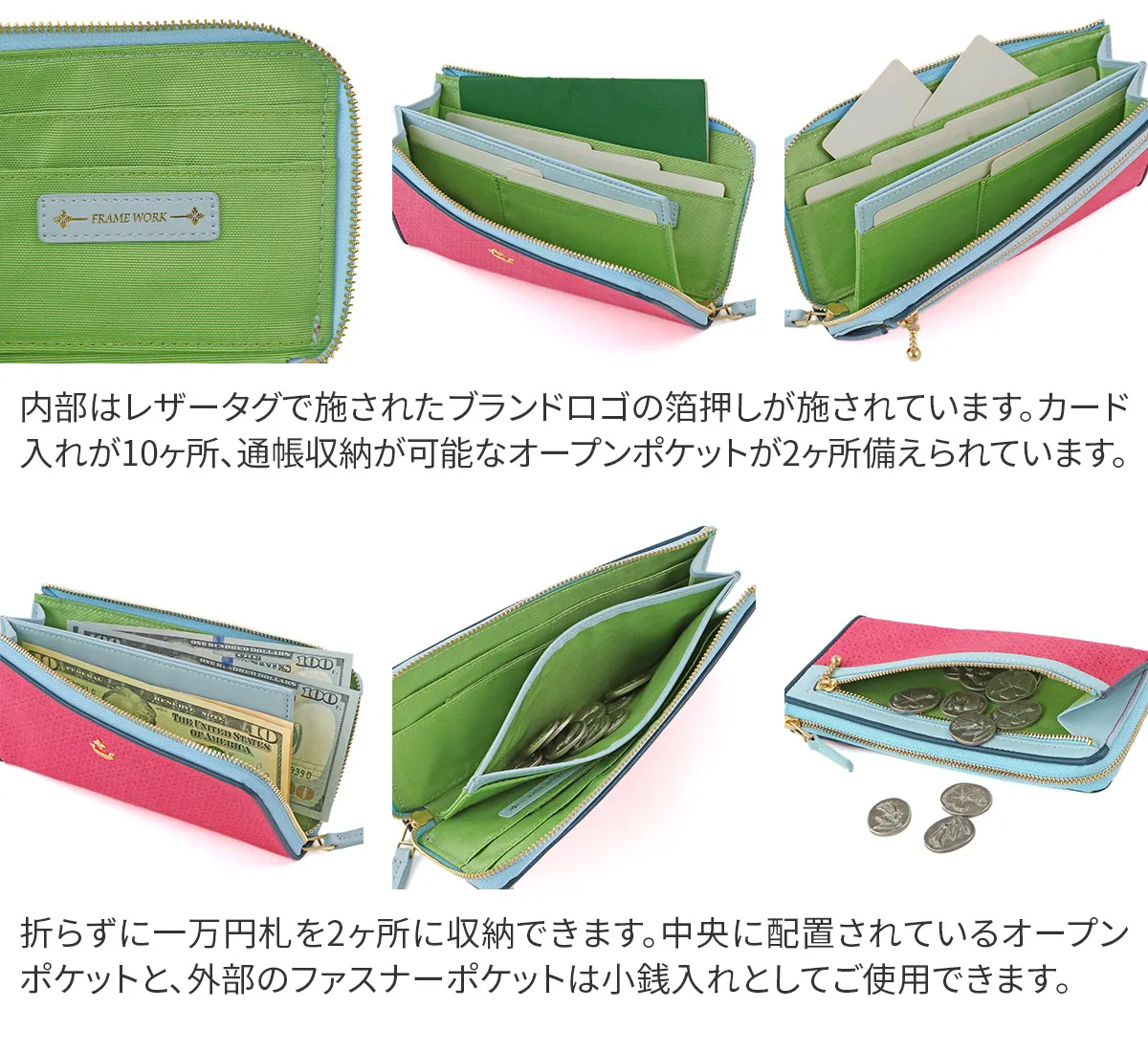 FRAME WORK(フレームワーク) イベリス 小銭入れ付き長財布 (L字ファスナー式) 0045043