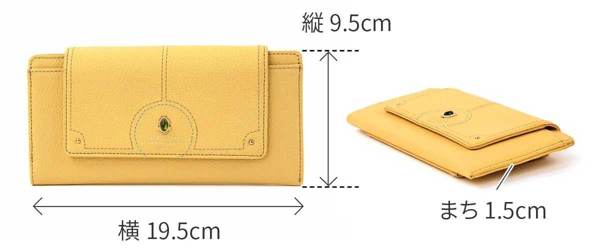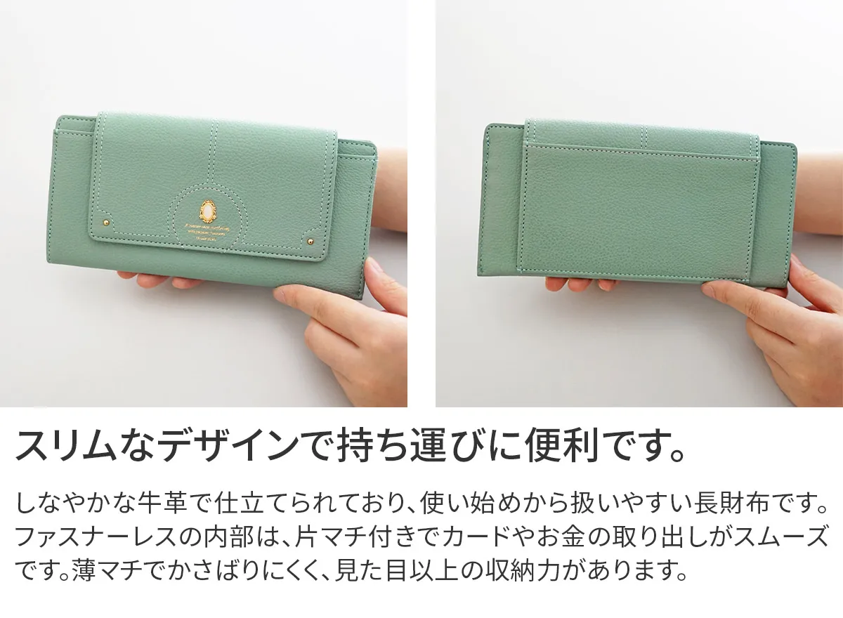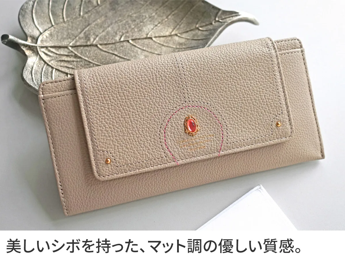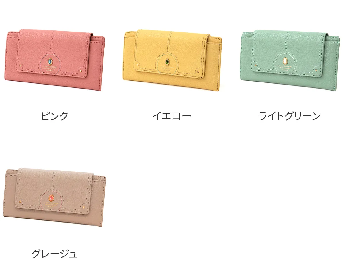 煌めくレザーに、パワーストーンをあしらったシリーズ。ガラスから生まれた鮮やかなストーンは周囲に漂う力を柔らかく変換し、持つ人に優しく寄り添います。色に込めた意味とともに、大人の女性の日常に活力を。 パワーストーンが目を惹くデザイン性に優れた長財布は、開くと中まで鮮やかな配色です。内部は一目で中身を確認できるファスナーレス仕様です。カードやお金、通帳やレシート類をしっかり収納できる優れた収納力に加え、薄型でバッグにすっきり収まるスマートな持ち心地です。