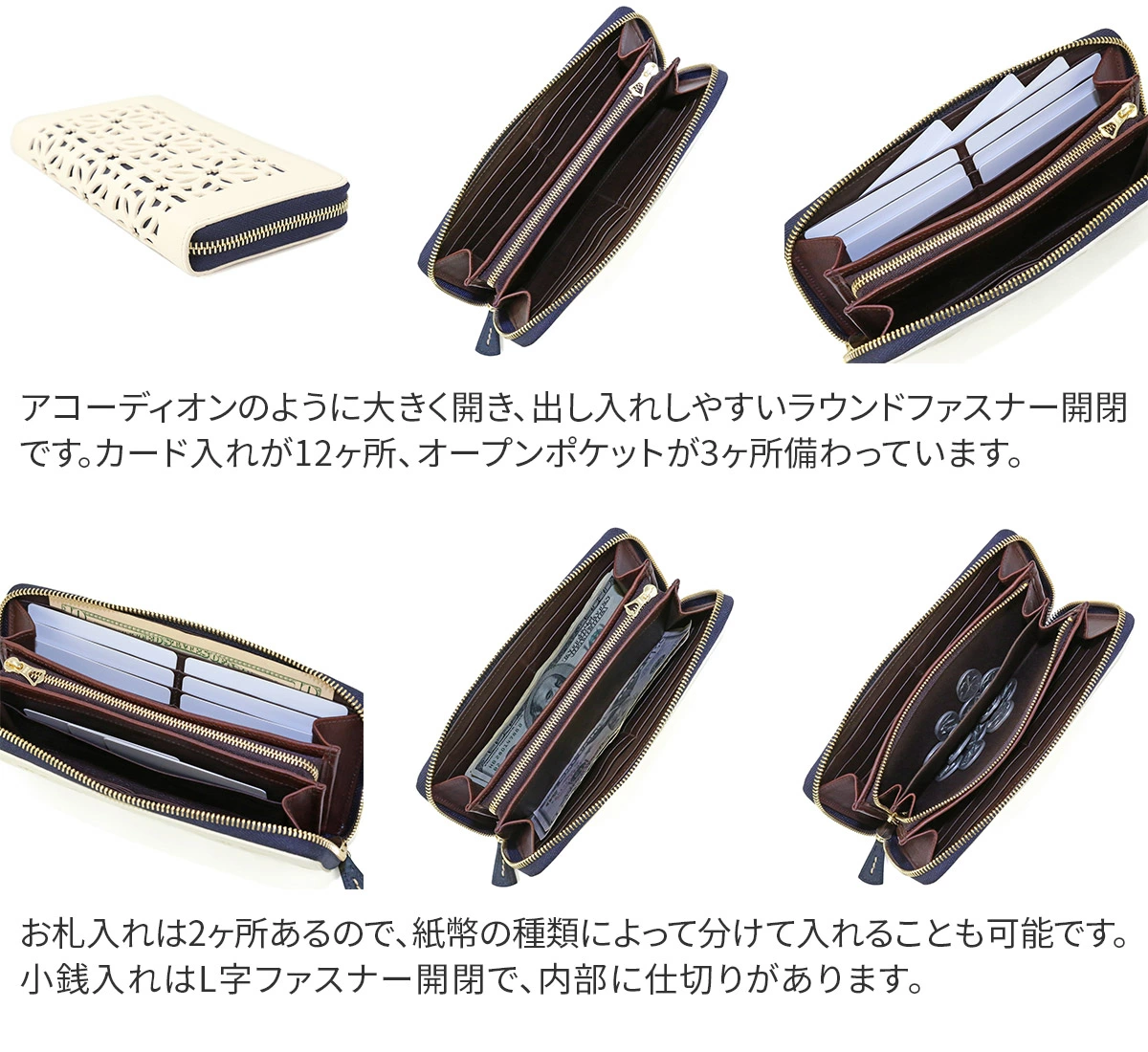 genten(ゲンテン) cut work(カットワーク) 小銭入れ付き長財布(ラウンドファスナー式) 49493(42191)