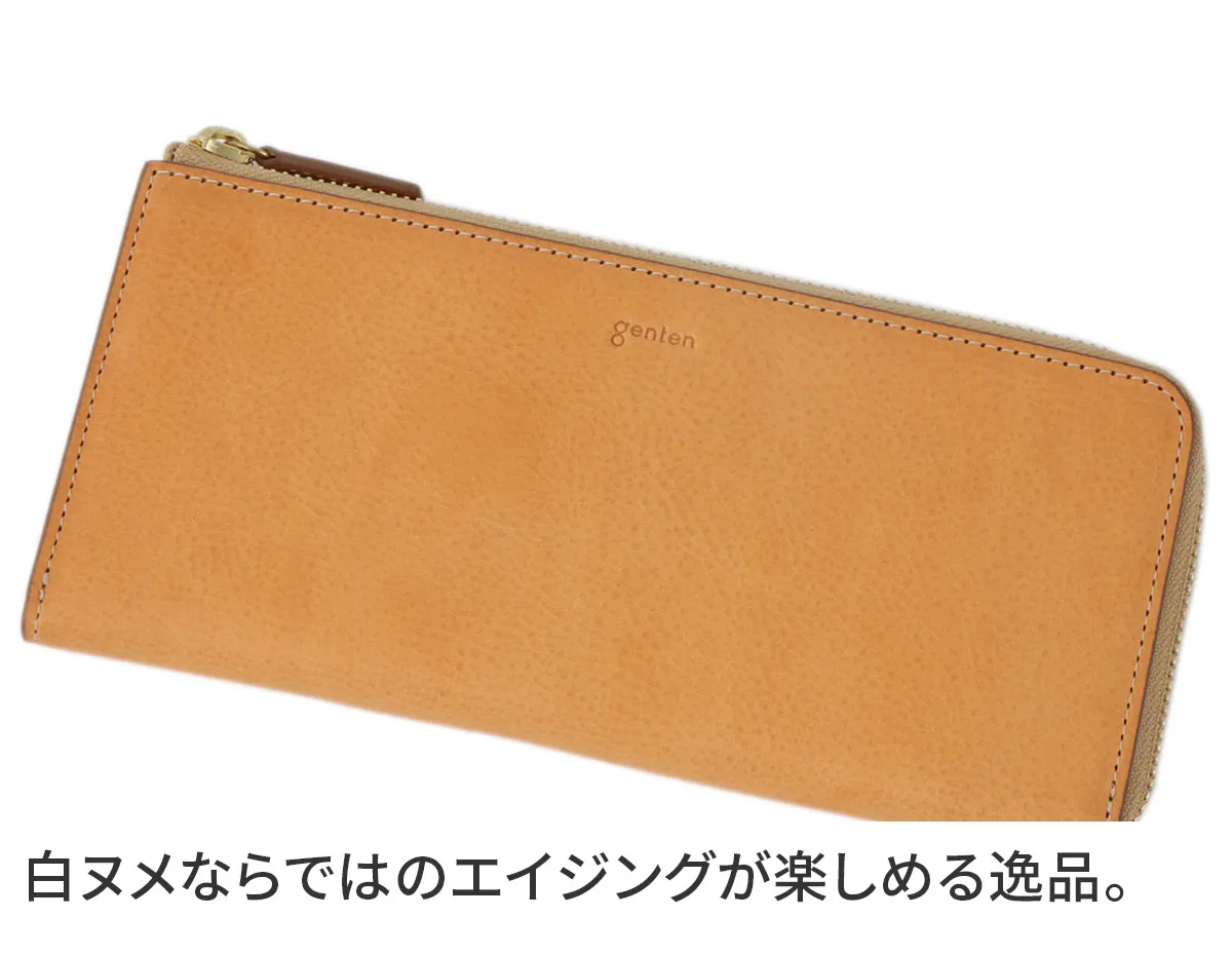 完全な無染色の白ヌメならではの、“綺麗な経年変化”を、存分にお楽しみいただけるシリーズ。 本革の証である、キズ、シミもそのまま活かし、あるがままの革の風合いを引き立たせるよう、ミニマムかつシンプルなフォルムとデザインにまとめました。 良質なイタリアトスカーナ産の革ならではの、奥深いエイジングを存分に楽しめるやさしいヌメ色でありながらも、急な雨や水濡れでも安心して使えるところもポイントです。 《素材の特性》フィレンツェトスカーナのタンナーで鞣されたダブルショルダーを使用。 cuoioのヌメ革は、水が付いてもしばらくは染みこまないため焦らずに拭き取ることができます。 水染みが残りにくいため、白ヌメ革を普段使いに気兼ねなくお楽しみいただけます。 キズやムラも含め、牛革本来の自然な風合いをそのまま取り込んでいます。使用頻度と日焼け等にあわせ、より本革ならではの深いエイジングの魅力を高めてくれます。 スリムなフォルムでエイジングをお楽しみいただける小銭入れ付き長財布。 L字ファスナー式なので、視認性が高く出し入れしやすい仕様となっています。 見た目以上の収納が可能な逸品です。