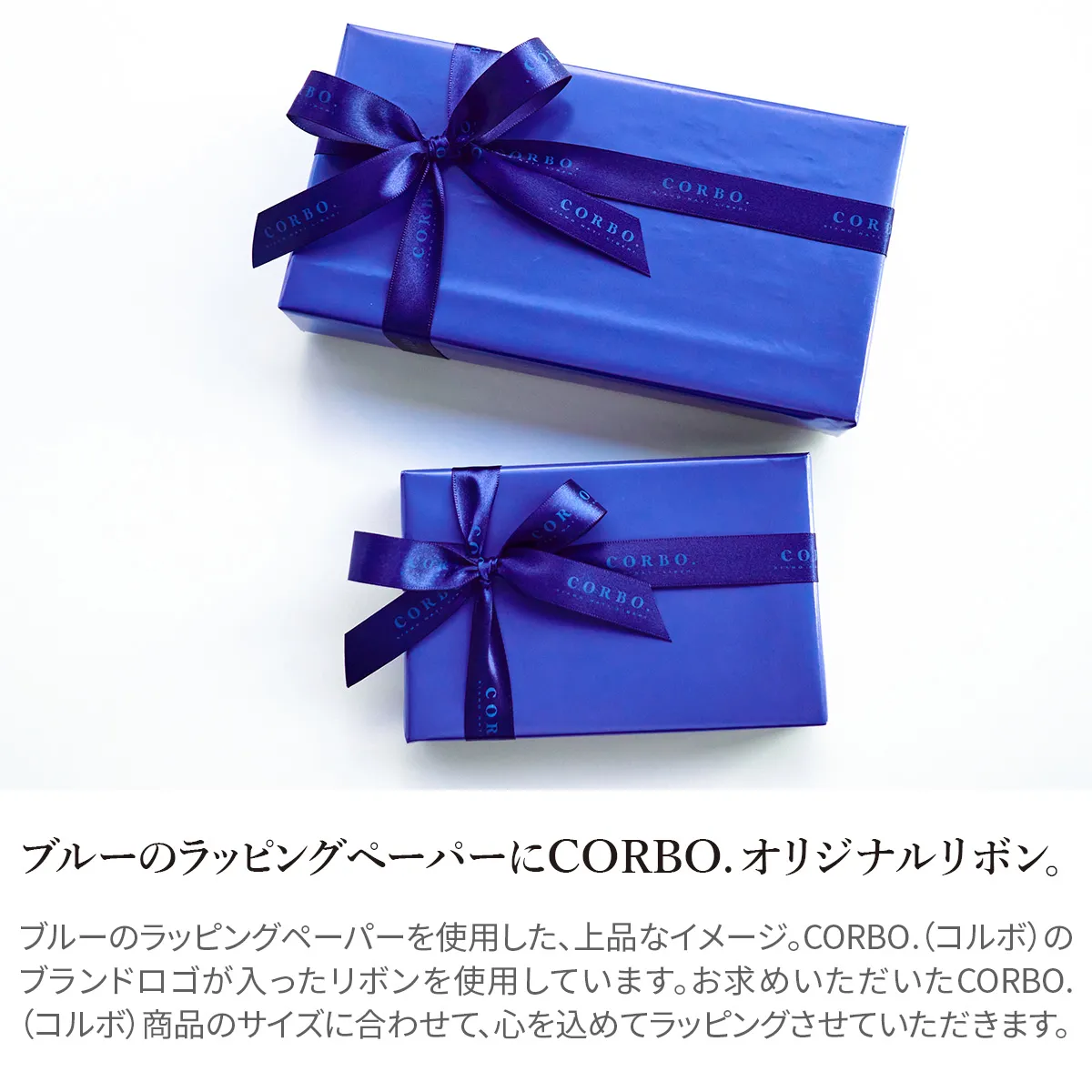 CORBO.(コルボ)オリジナルギフトラッピング ひとつひとつ丁寧に心を込めてお包みいたします。 ※CORBO.商品をお買い上げの方のみご注文頂けます。 ※財布・長財布・小物のみのラッピングとなります。 (バッグ類の大型商品は対象外です)