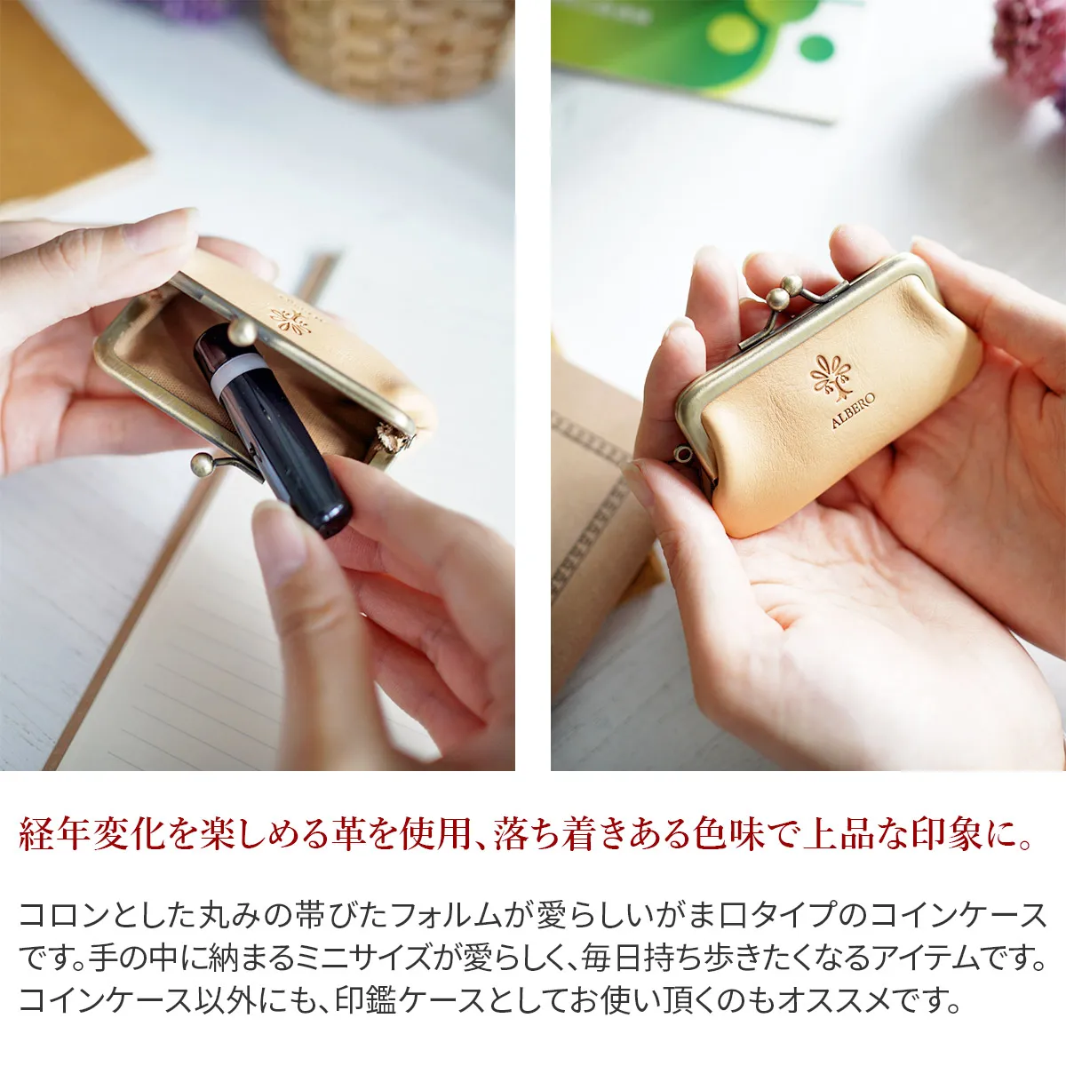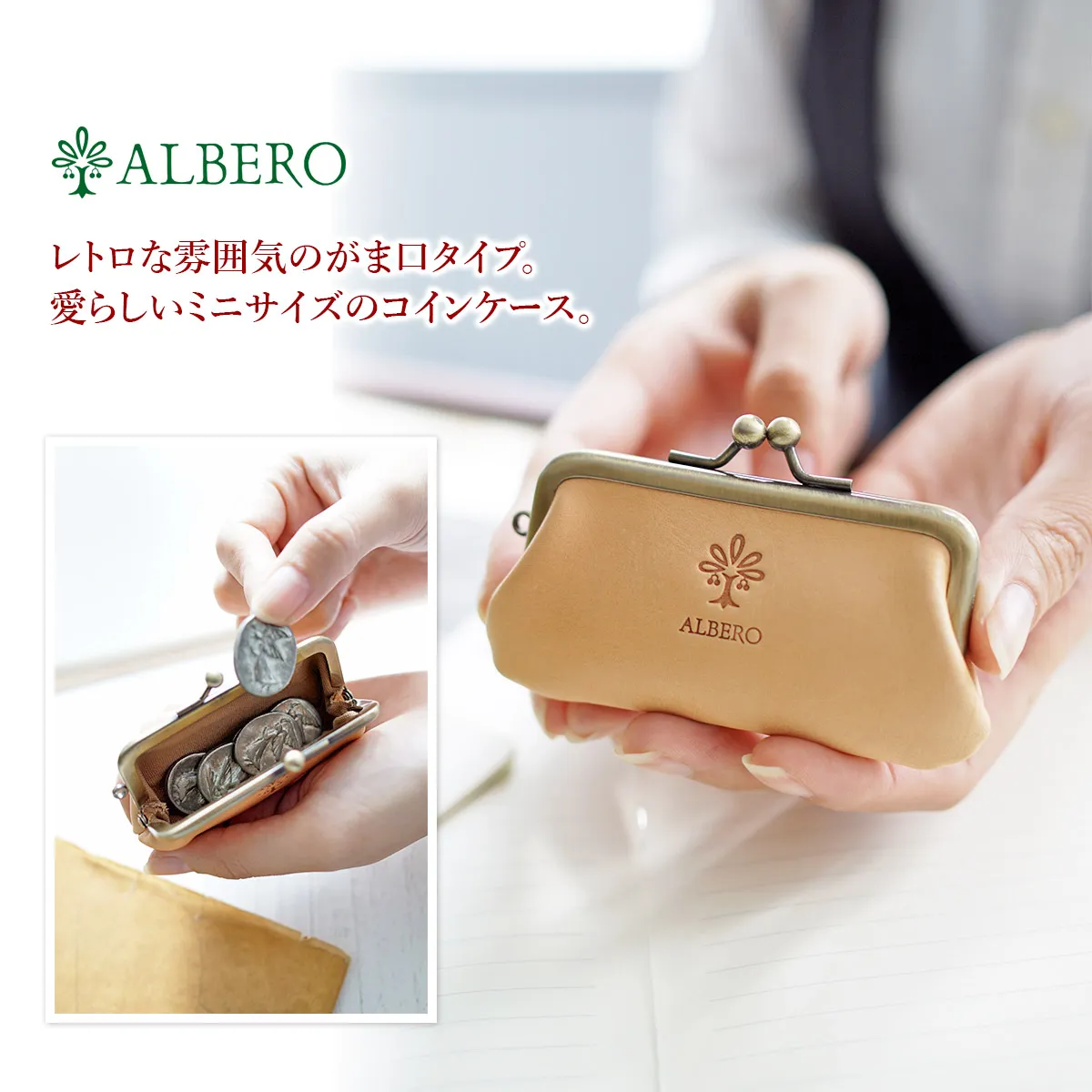ALBERO(アルベロ) NATURE(ナチュレ) がま口コインケース 5359 ゆっくりと美しい馴染みを魅せる、 ポケットにも楽々収納できるコインケース♪
