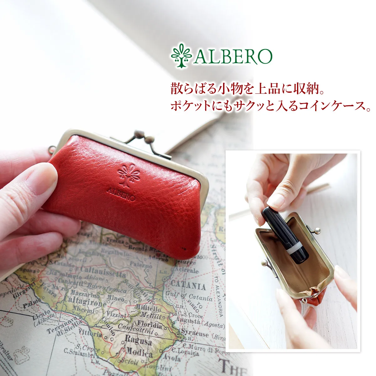ALBERO(アルベロ) BERRETTA(ベレッタ) がま口コインケース 5527 手の中に納まる小さなサイズ♪ 長く愛用できるシンプルなデザインの革小物