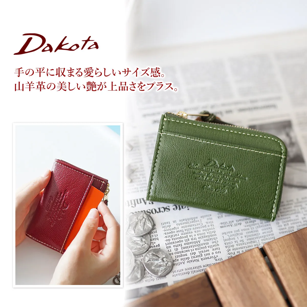 Dakota(ダコタ) モデルノ 小銭入れ付きパスケース 0030450(0035090)(0034090) ゴールド金具が手元を華やかに コンパクトなフォルムに機能美を詰め込んだ革小物◎