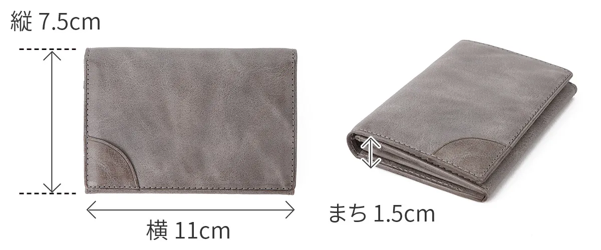 《 FOG leather フォグレザー 》 イタリアのトスカーナ州ポンテ・ア・エゴラ地区にあるTEMPESTI社が製造する、スムースな表面にロウ引きを施したショルダー革です。同社で製造されている『MAINE /マイネ』をベースとして、革の表面にワックスを吹き付けて白っぽく仕上げられた革になります。革に含まれる油脂成分はそれほど多くなく、程よい張り感と軽やかさがあります。 エイジングについては、使い込むことで表面のワックスがとれていき、ロウビキの革特融の上品で自然なツヤが出てきます。色の変化はロウビキされていることもありゆっくり変化していくイメージです。 正面に名刺ホルダーがあり、名刺交換をスマートに演出してくれます。外側や内部にもフリーポケットが設置されていますので、いただいた名刺を分けて収納していただけます。革の表面にワックスが吹き付けてあるので、優しい色味で上品な印象に仕上がっています。就職祝いなど、ギフトのアイテムとしてもお勧めです。