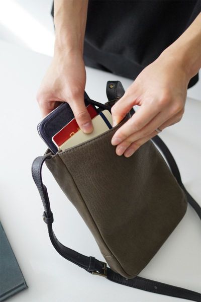 フルベジタブルタンニンレザーのやぎ革を使用した、ミニマルシリーズです。 必要最低限の荷物を入れ、手ぶらでお出掛け。荷物の量やスタイルに合わせてお選び頂けるよう、豊富なサイズバリエーションでご提案します。 はじめは硬めのタッチ感の素材ですが、使用毎に柔らかくなり、手に馴染んでくるのが感じられます。 メイン収納には大型のスマホ、長財布、iPADminiが収納できるサイズ感です。 必要最低限の荷物を入れた際に空いてたすき間を少なくし、体にフィットするサイズ感です。