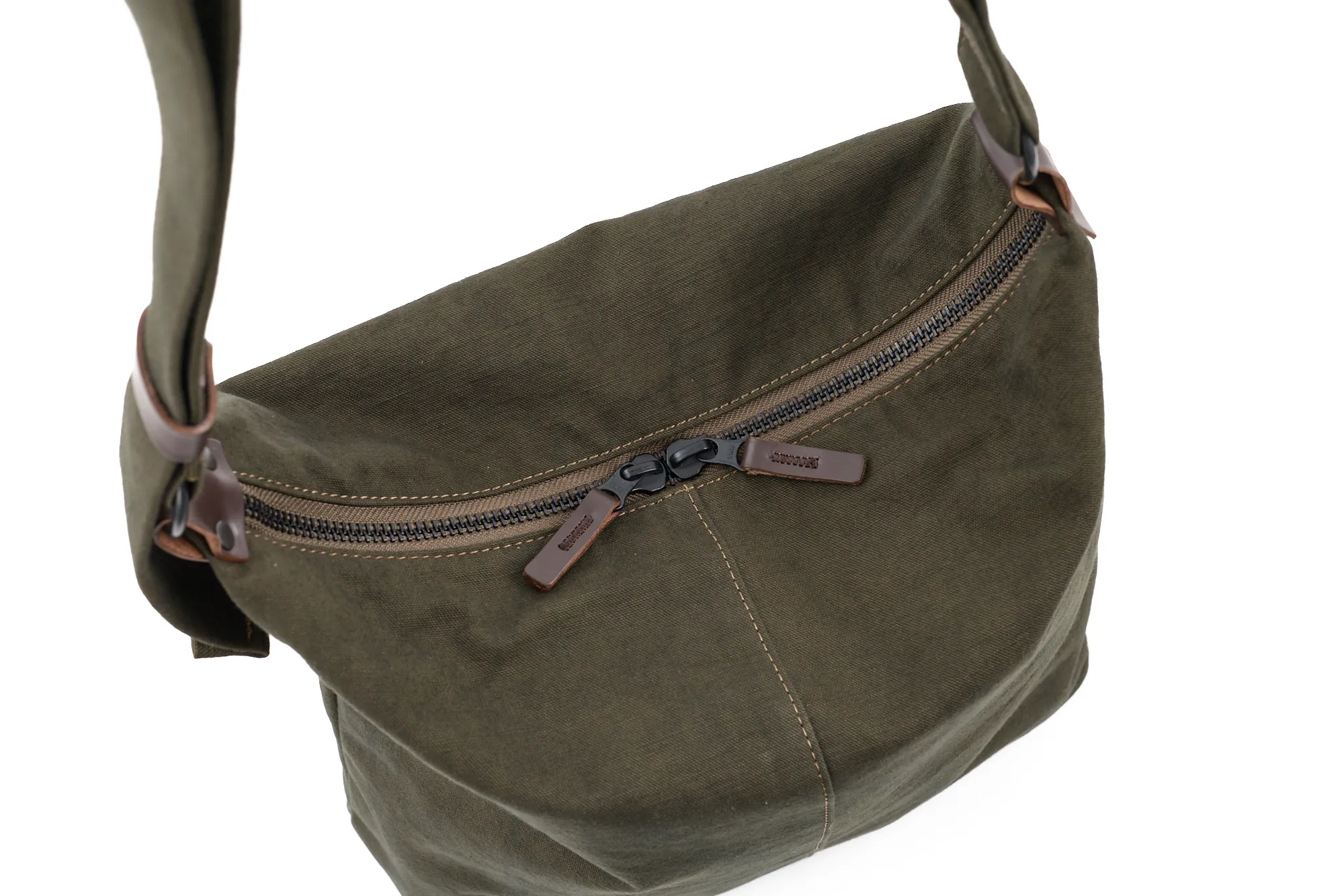 ・軽さと風合いどちらも妥協しない、黒さび染め帆布のショルダーバッグ。