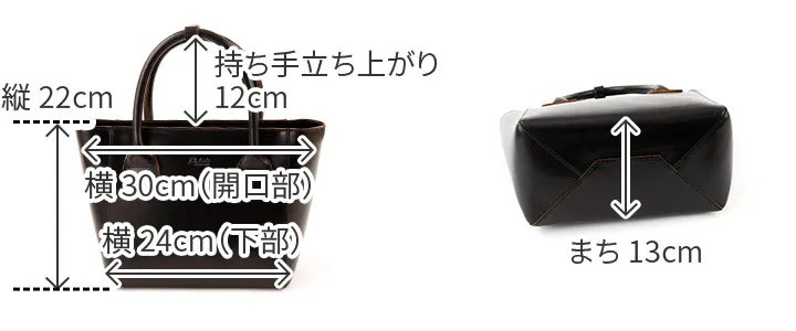国内でも希少な大規模ピット槽で、時間と手間をかけて鞣し剤を染み込ませたヌメ革を使用。 きれいな経年変化と、コバなど細部の美しさの仕上がりが特徴です。 紙袋の様な底がポイントのバッグは、特殊なポストミシンを使用しています。厚くて硬い革を縫製が出来るのは、工場でも限られた職人にしか出来ません。 内部には大きさの異なるポケットが付いており、小物を綺麗に分別していただけます。 付属の底板があるので、荷物の量が少なくても型崩れすることなくお使いいただけます。