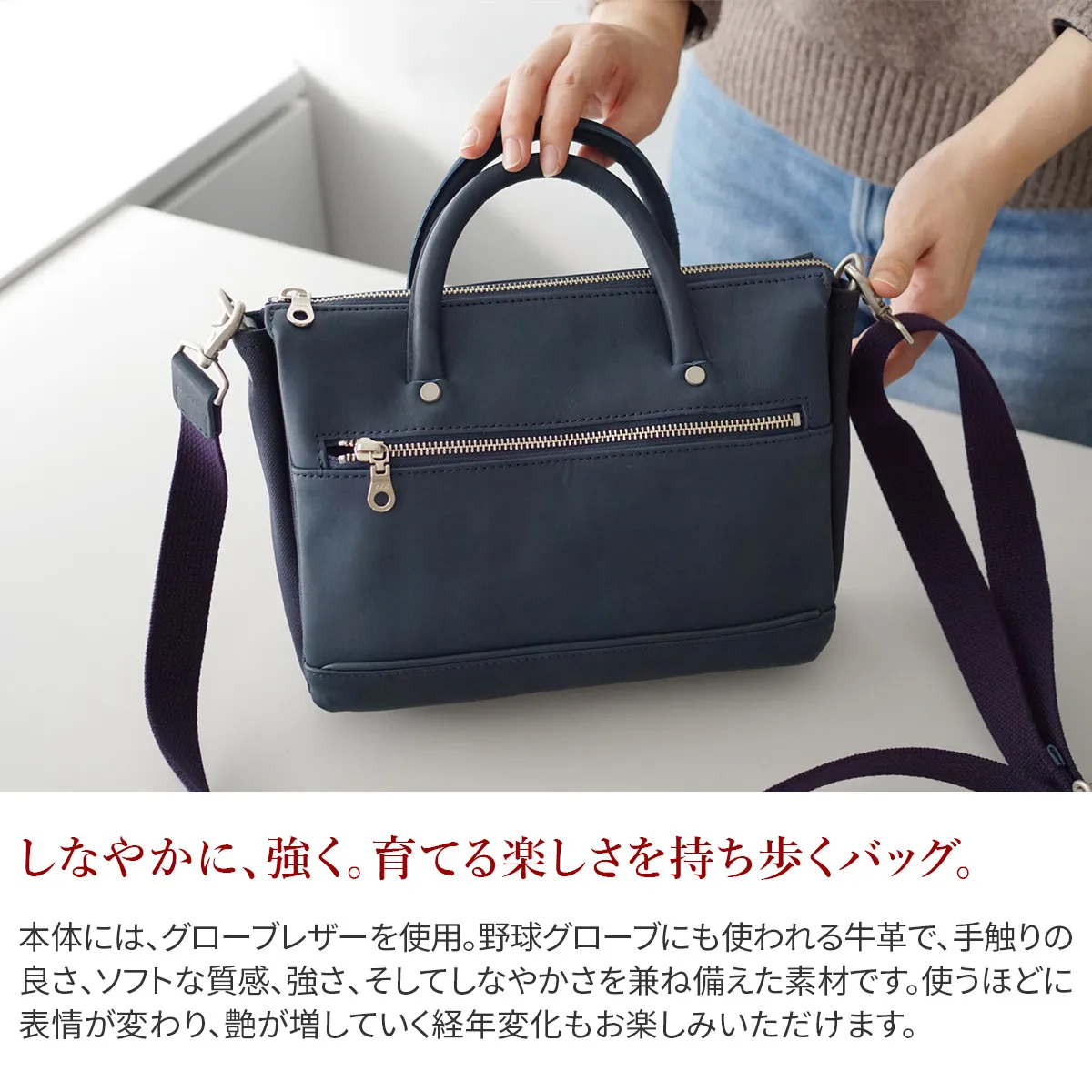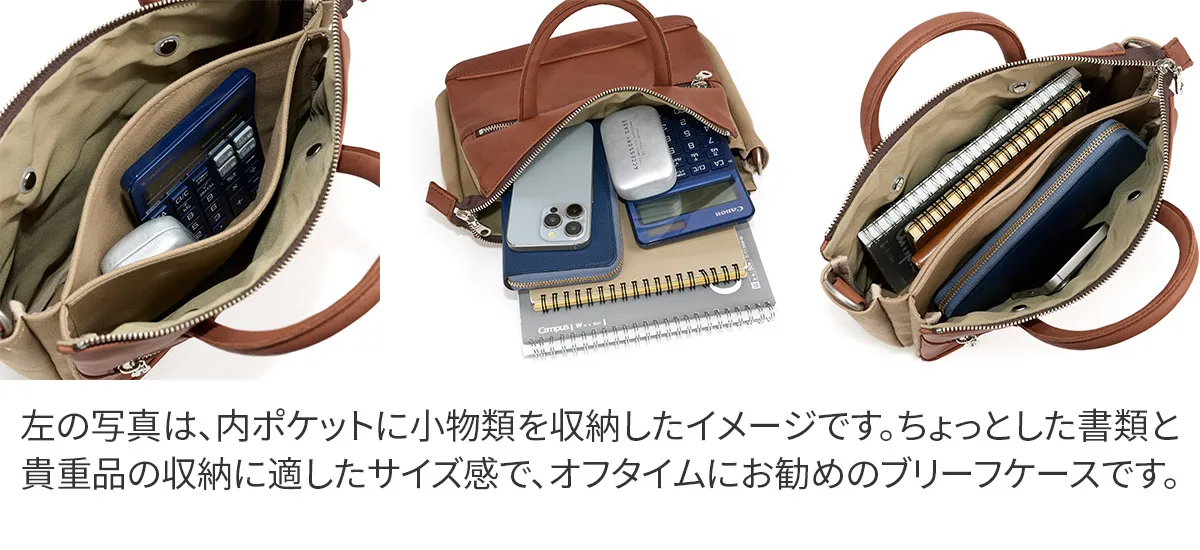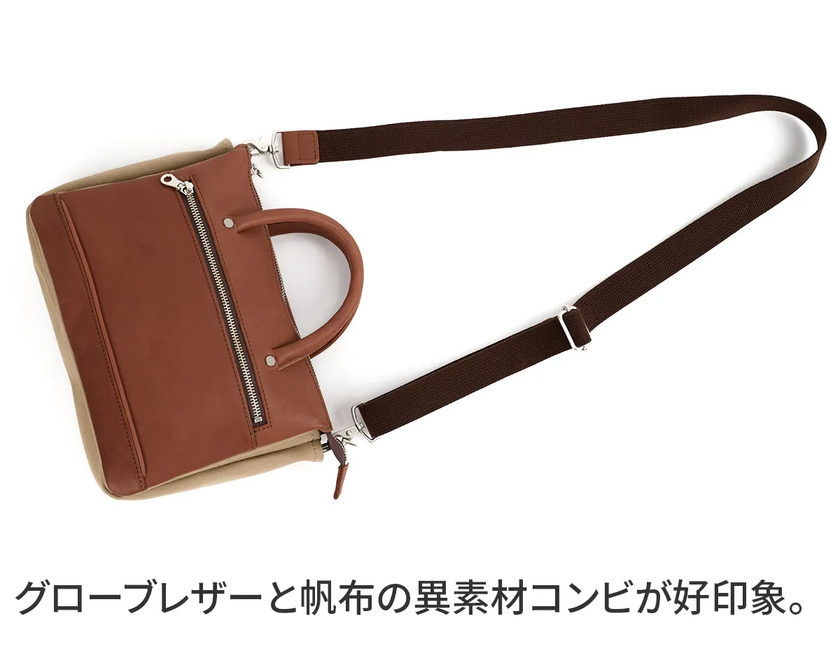 素材はしなやかで柔らかいグローブレザーを使用しています。 手触り、ソフト感、強さ、しなやかさが求められる「野球グローブ」に使われる牛革です。 柔らかで馴染みやすい素材で、使い込むほどに艶が増して経年変化をお楽しみ頂けます。 タブレットを収納していただける、コンパクトなミニブリーフケースです。着脱可能なショルダーベルトが付属しており、手持ちスタイルの他に肩がけや斜めがけの持ち方をしていただけます。すっきりとしたフォルムで車移動の方にもおすすめのアイテムです。