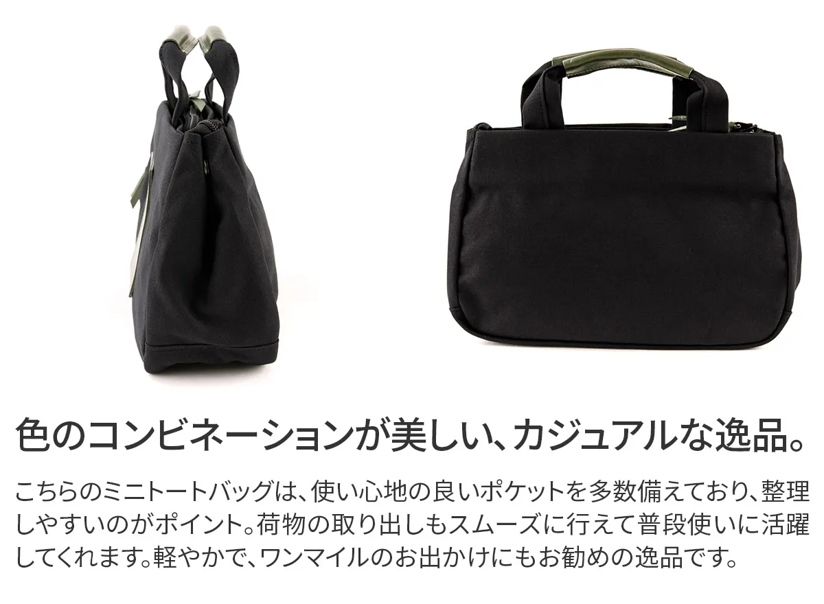 柔らかさがありながら、耐久性にも優れた10号高密度帆布を贅沢に使用しています。ベーシックカラーの帆布にヌメ革で色展開しております。 こちらのミニトートバッグは、使い心地の良いポケットを多数備えており、整理しやすいのがポイントです。荷物の取り出しもスムーズに行えて普段使いに活躍してくれます。メイン開口部はファスナー仕様になっており、安心感のある作りです。間口が広いので視認性にも優れています。ユニセックスデザインの軽やかな鞄ですので、ワンマイルのお出かけにもお勧めの逸品です。