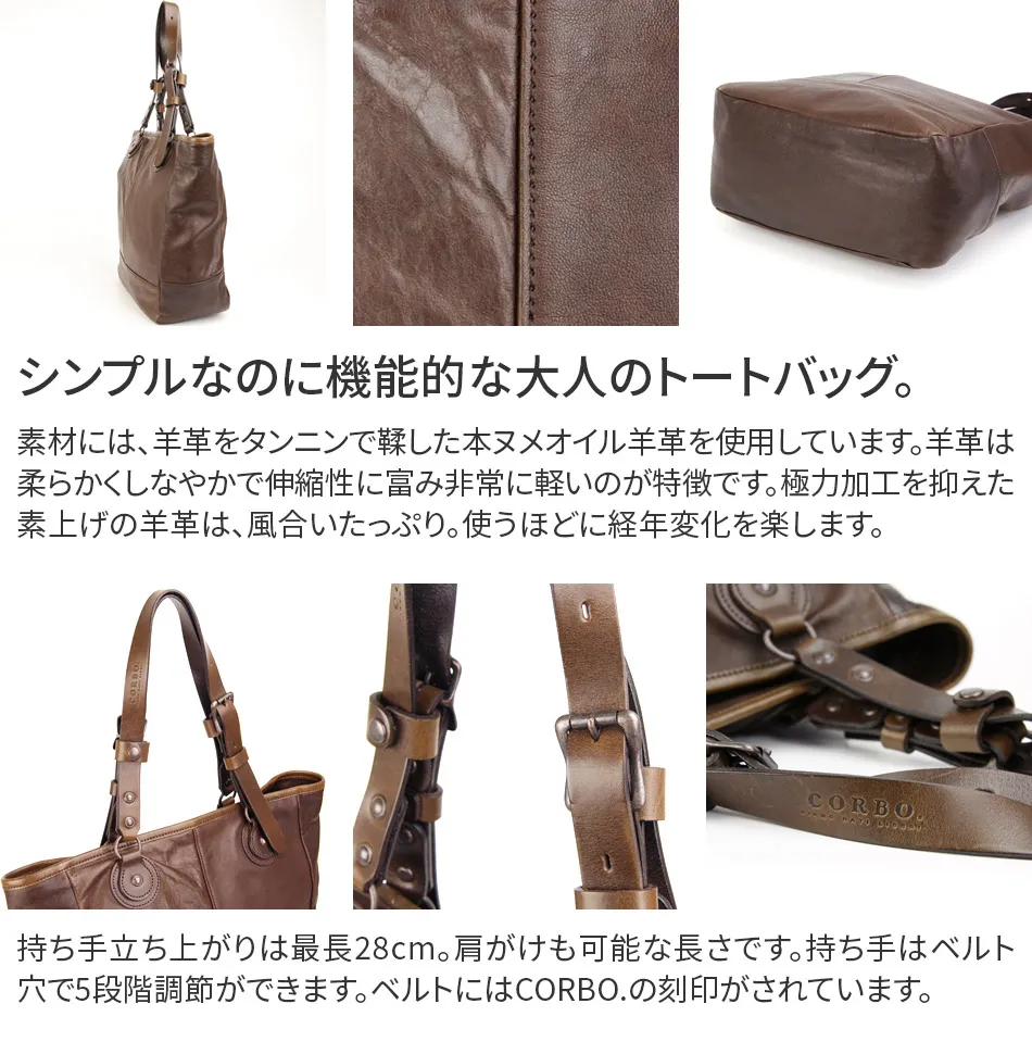 CORBO.(コルボ) -SunDog-SHEEP- サンドッグシリーズ トートバッグ 8KL-9693 風合いたっぷりのナチュラルな羊革を使用した、 使い込むのが楽しみなトートバッグ。