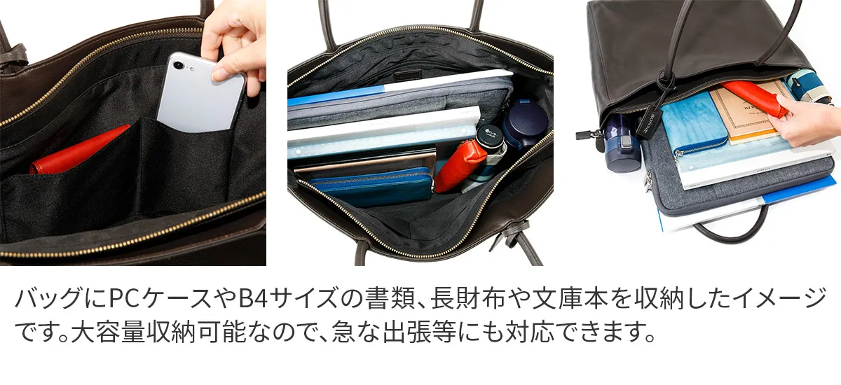 上品なレザーをふんだんに使用したバッグコレクション「CLAUDIO(クラウディオ)」。 時代のトレンドに左右されない、普遍的で長く使用できるデザインが特徴です。 オールレザーならではの高級感とポケット等の充実した収納が魅力。 SONNE(ゾンネ)の定番コレクションです。 滑らかでタッチ感の良いレザーが心地良いトートバッグです。ハンドルが長めに設計されているので、肩がけしていただきやすいです。 バッグの外側にも内側にもポケットが充実しているので、小物の出し入れがスムーズです。