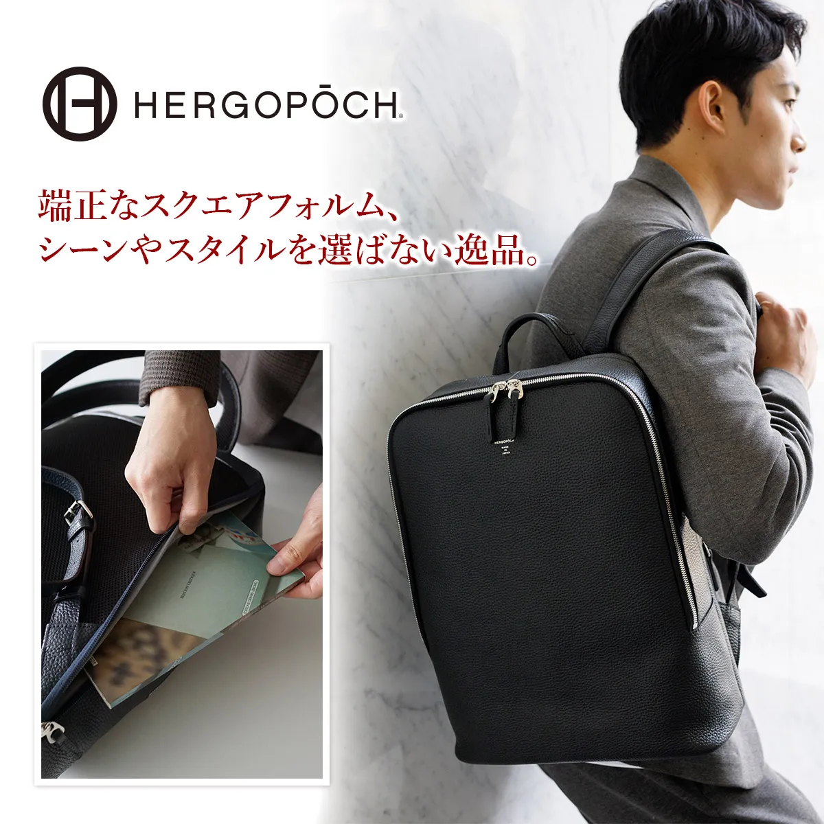 HERGOPOCH(エルゴポック) ER Series エンボスレザー バックパック ER-BP 美しいシボ感が印象的な、 高級感漂うバックパック。