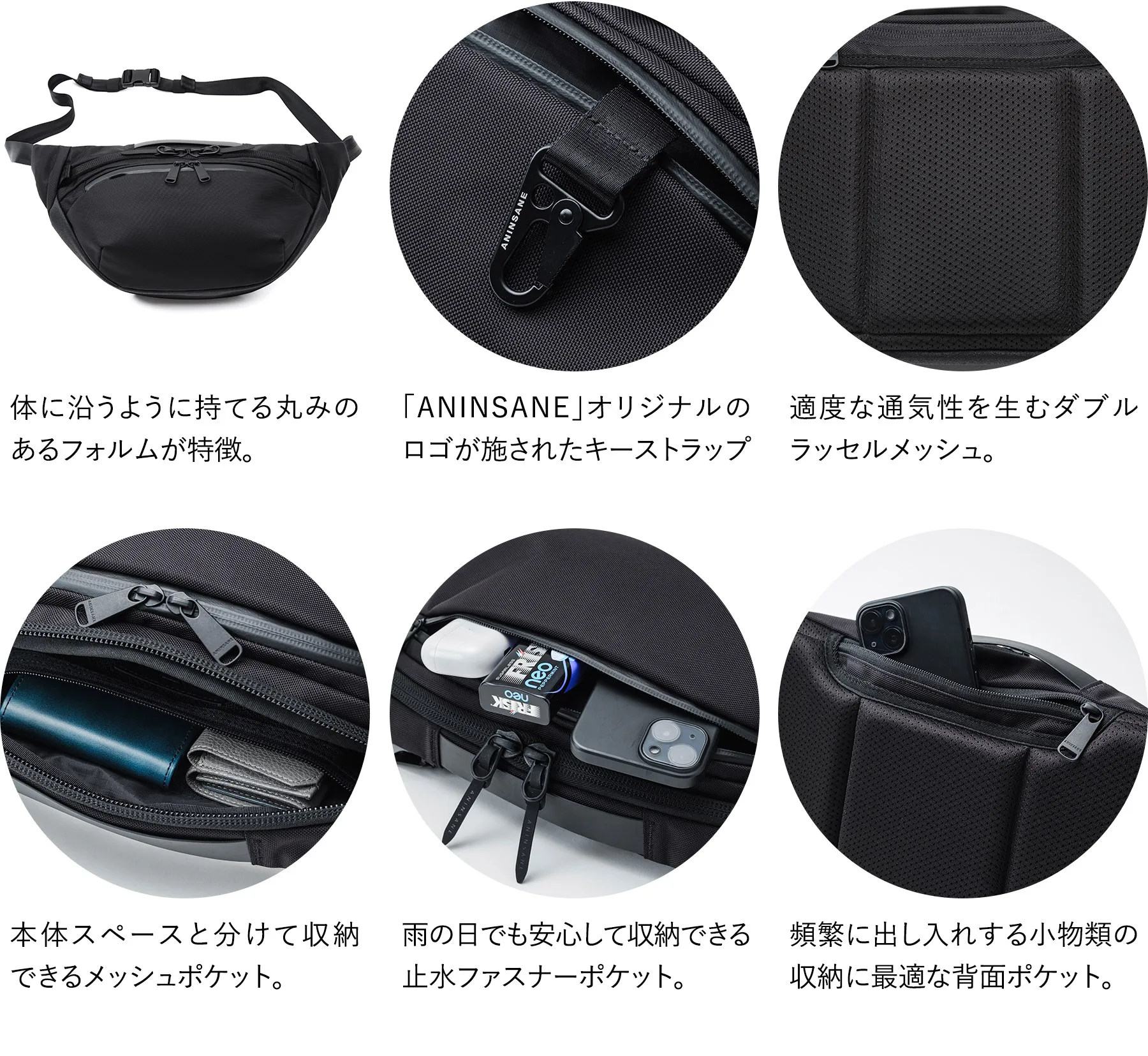 ANINSANE(アンインセイン) ボディバッグ AN-H03 素材からパーツ1つ1つまでにも拘り抜いた 機能美あふれるボディバッグ