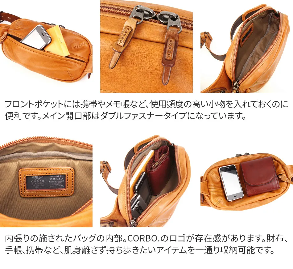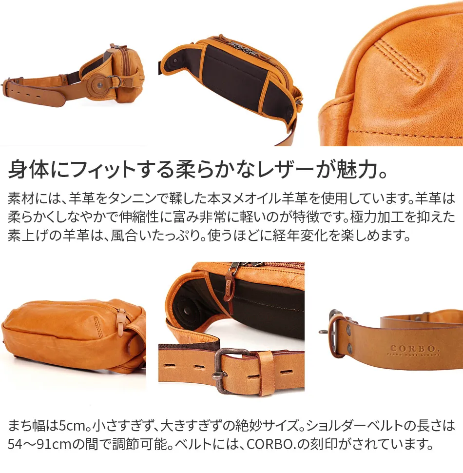 CORBO.(コルボ) -SunDog-SHEEP- サンドッグシリーズ ボディバッグ 8KL-9694 風合いたっぷりのナチュラルな羊革を使用した、 使い込むのが楽しみなボディーバッグ(ボディバッグ)。