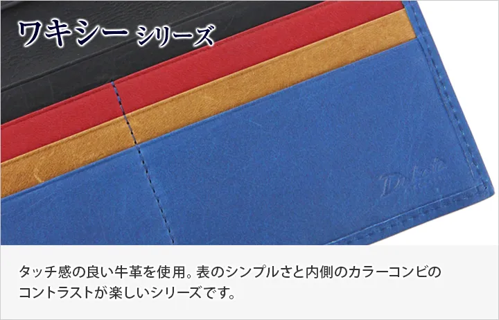 タッチ感の良い牛革を使用しています。 表のシンプルさと内側のカラーコンビのコントラストが楽しいシリーズとなっております。 発色が綺麗なレザーを使用していて、手元を華やかな印象にしてくれます。 スマートなフォルムなので、スーツのポケットやミニバッグにも入れやすく利便性に優れたアイテムとなっております。 カード入れが6つ設置されていますので、キャッシュレス派の方にもお勧めです。