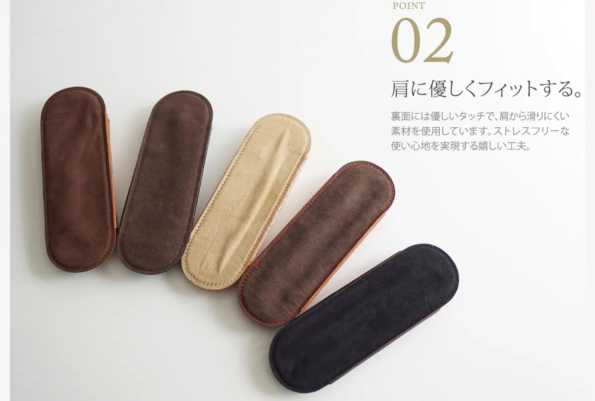 Sentire-Oneオリジナル ショルダーベルト パッド(肩当てパッド)(大) NA-PAD-L(2本用) お客様のご意見からサイズをリニューアルしました、 大きなバッグもしっかり持てる上質素材の肩当てパッド。