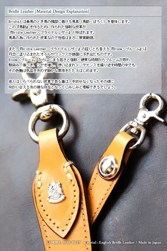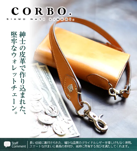 CORBO.(コルボ)-face Bridle Leather- フェイス ブライドルレザー シリーズ ウォレットコード 1LD-0227 堅牢なイングリッシュブライドルレザーを惜しげもなく使用。 大人の品格たっぷりのウォレットチェーン。