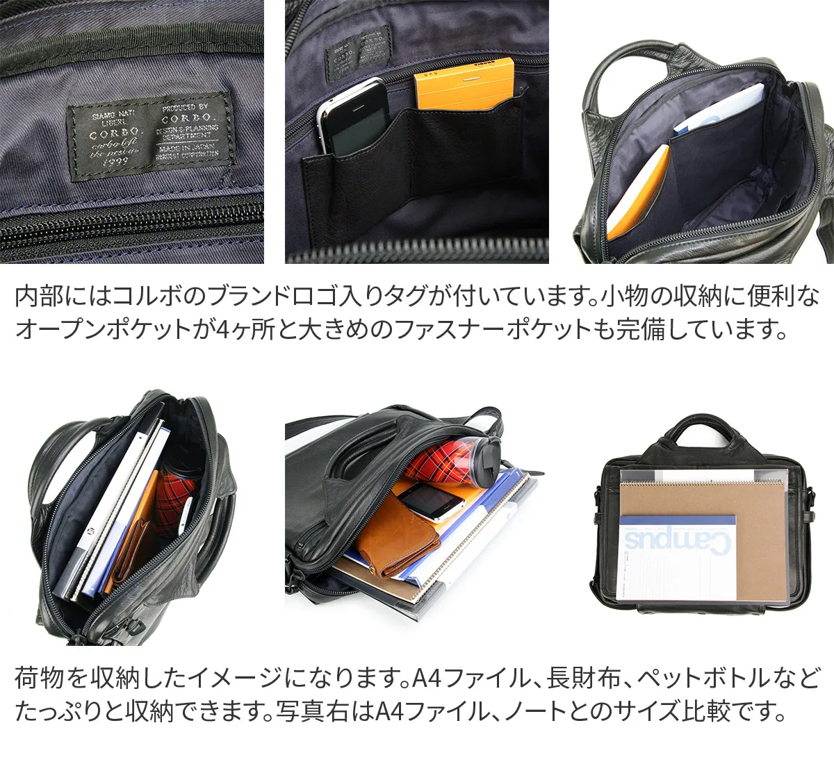 CORBO.(コルボ) -Moon less night- ムーンレスナイト シリーズ ブリーフケース 8JA-9544 ビジネスバッグの堅すぎる印象をくずした、 絶妙デザインのブリーフケース。