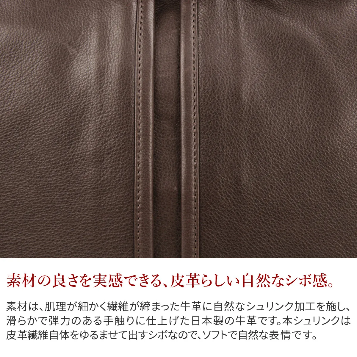 素材である牛革は、肌理が細かく 繊維が締まった牛革に自然なシュリンク加工を施し、滑らかで ふんわりと弾力のある手触りに仕上げた日本製の牛革です。 本シュリンクは皮革繊維自体をゆるませて出すシボなのでソフトで自然な表情があり、手触りも滑らかです。もちろん皮革特有の艶や変化も楽しめます。 スポーティなデザインにはめることで、素材感とデザインの微妙なギャップをつくり欧米的な雰囲気を出しています。性別、スタイルを問わず大人のカジュアルなコーディネートが楽しめます。