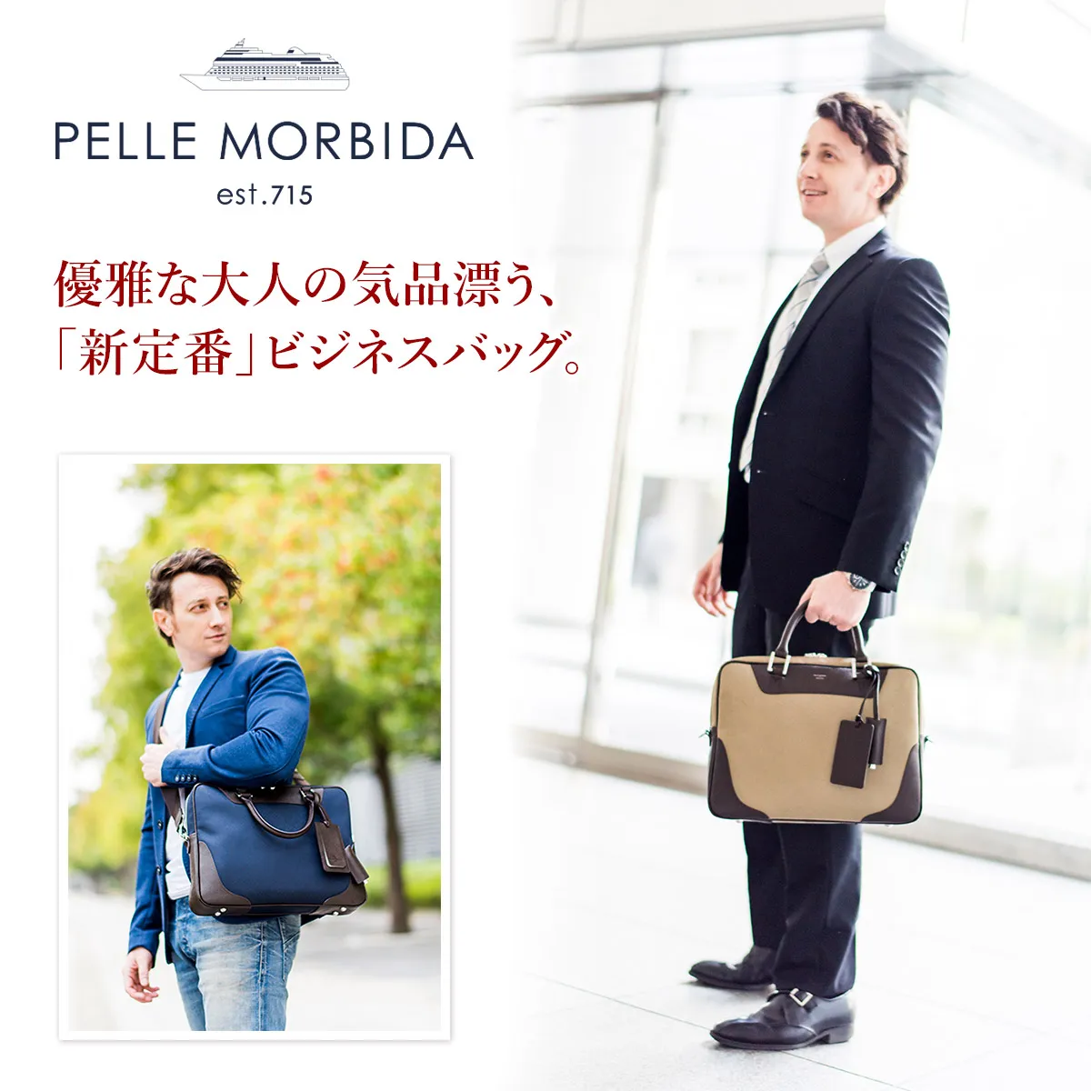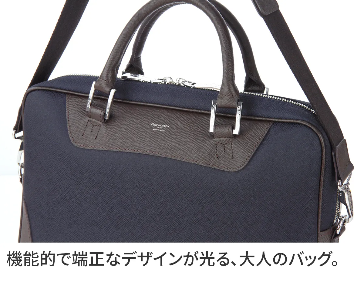 PELLE MORBIDA(ペッレ モルビダ) Capitano キャピターノ リモンタ A4ブリーフケース 1室タイプ (ショルダーベルト付属) PMO-CA104 リモンタ生地と型押しレザーが織りなす機能美。 現代のビジネスパーソンに寄り添う秀逸バッグ。