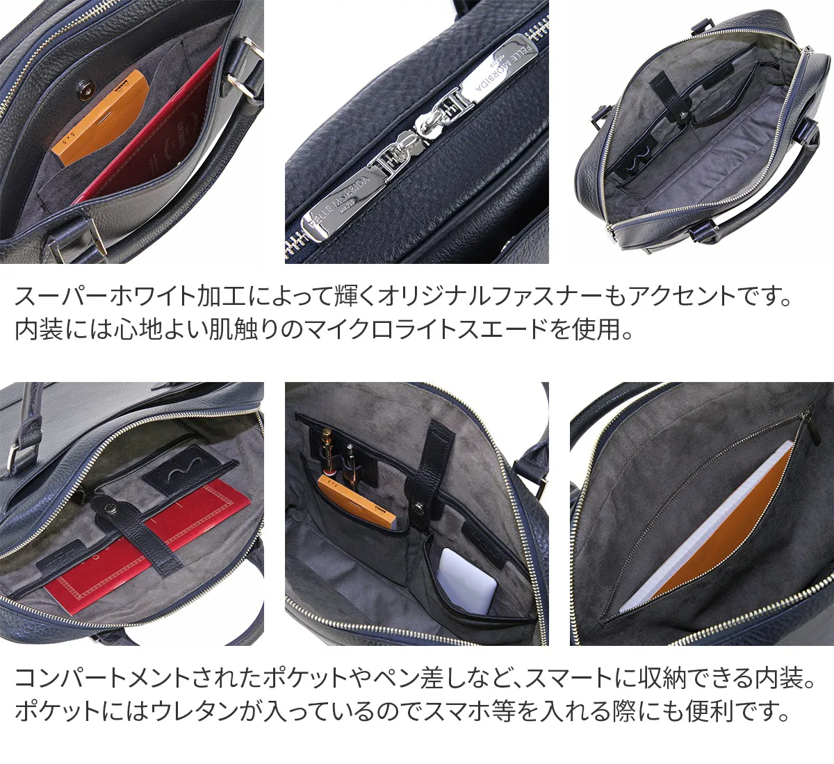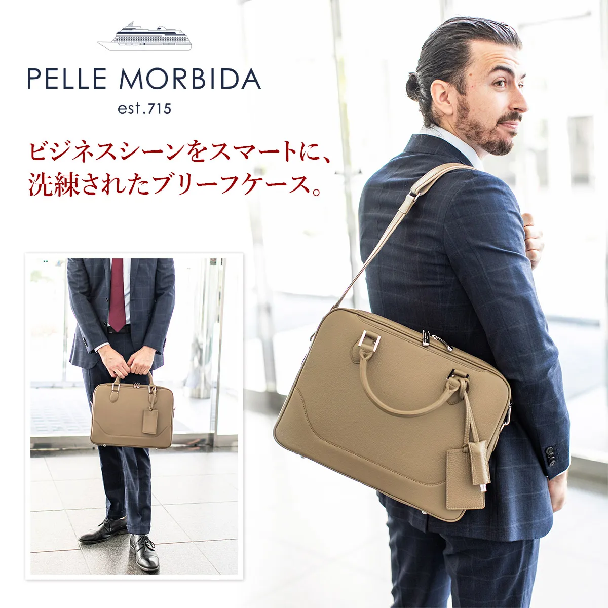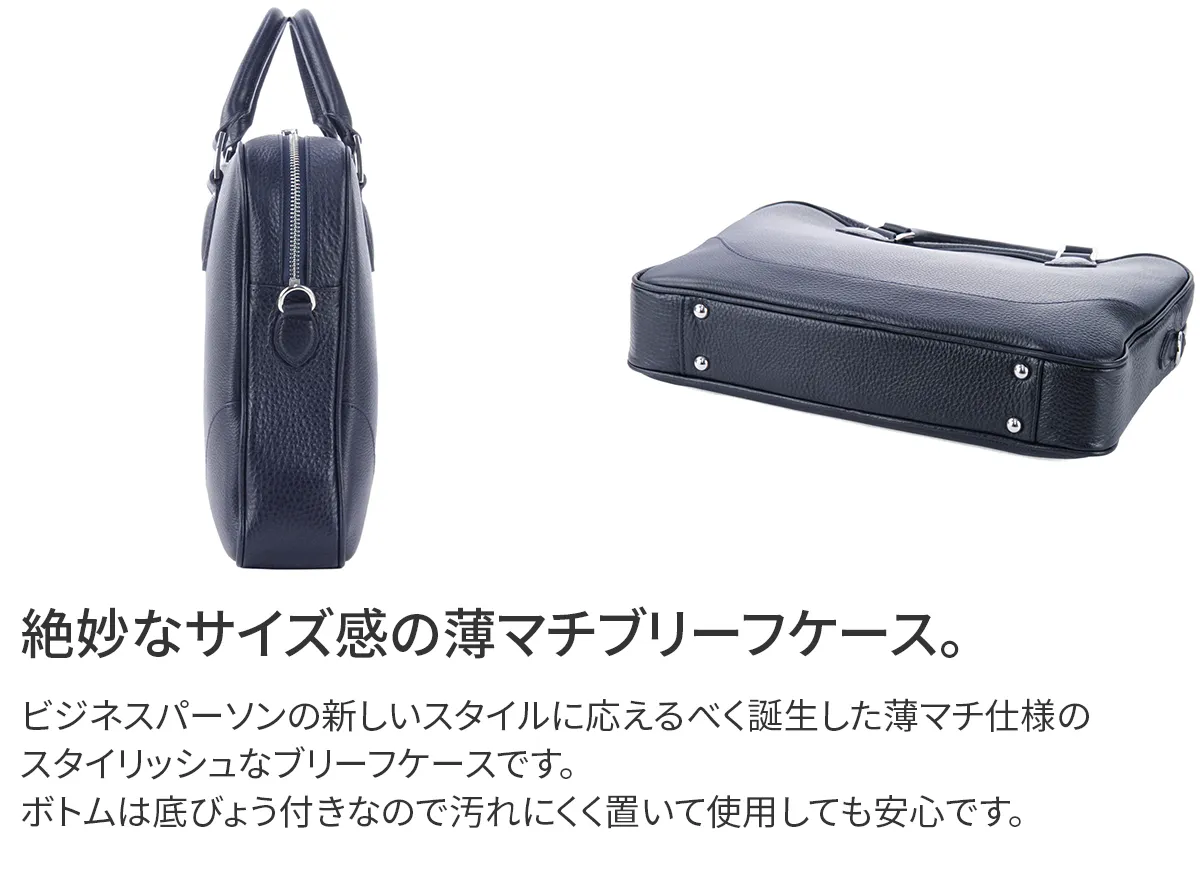 ビジネスシーンで活躍するブリーフも、スタイルによって選びたいもの。 PELLE MORBIDA充実のブリーフバッグコレクションに、マチが薄く、 やや小ぶりのアイテムがついに登場!ペーパーレス化がどんどん進む現代において、 今までのブリーフだと大きすぎるけれど、 クラッチはちょっと…というビジネスマンの新しいスタイルに応えるべく誕生した薄マチのブリーフです。 よりスマートに、またシュリンクレザー独特の柔らかい雰囲気が女性にも似合う、自立した姿が美しいブリーフです。 ペッレモルビダの代名詞でもある柔らかな風合いのシュリンクレザー。 革漉きなど、幾度も試作を重ね、シボ立ちを保ちつつ軽量な革を開発。 均一で綺麗なシボが優美な風合いを醸し出します。 柔らかさを表現しつつも、しっかりとしているため長く使えます。