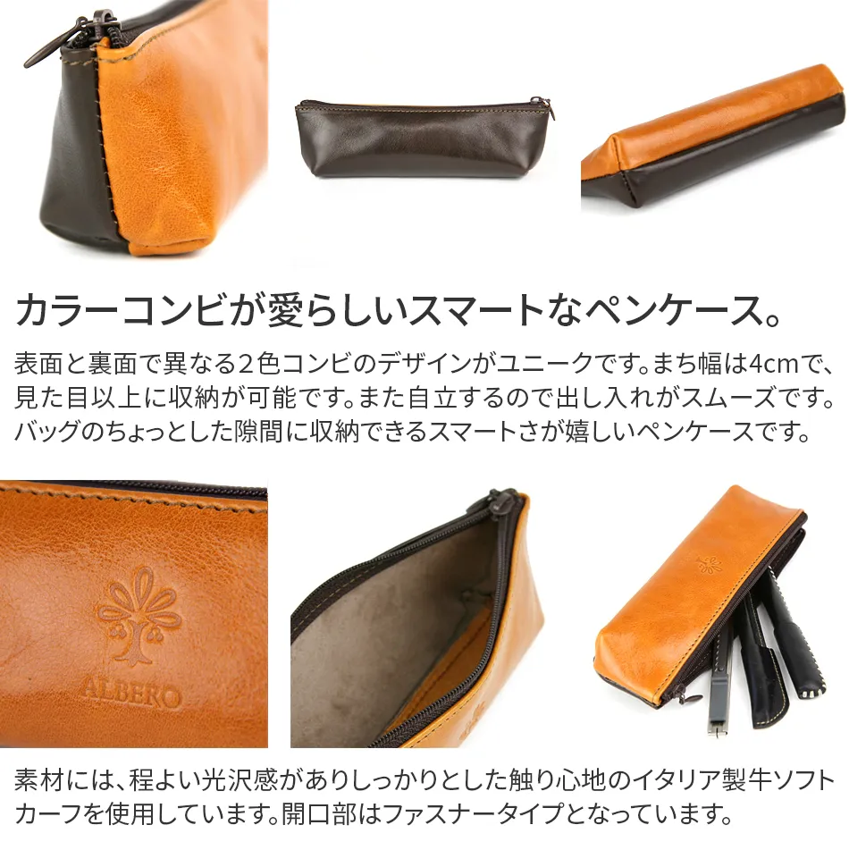 ALBERO(アルベロ) LYON(リヨン) ペンケース 4365 Sentire-One × ALBERO 前と後ろで違う雰囲気を楽しめる2トーン、 他とは違う洒落たデザインのペンケース